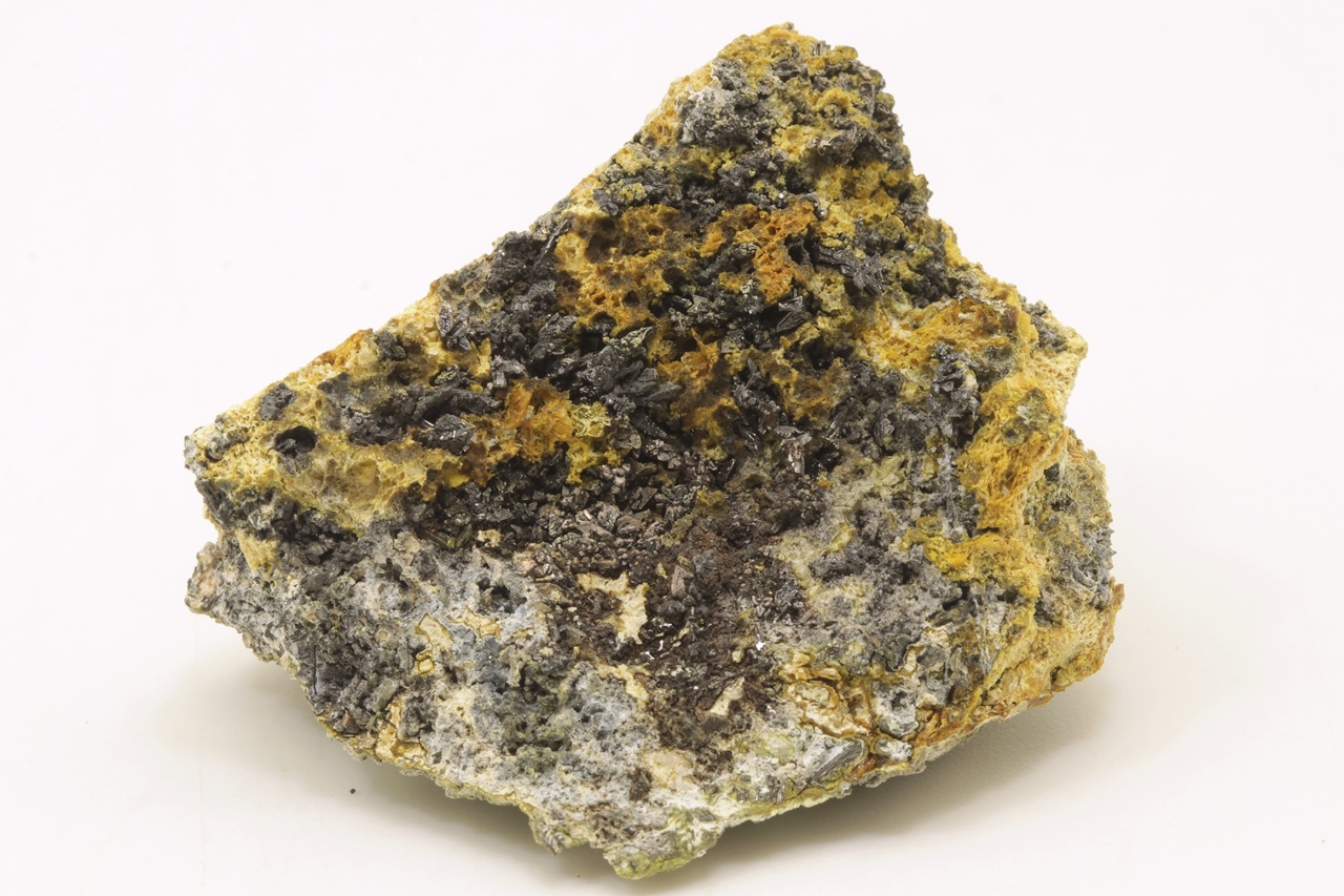 Reicher Probe glänzender Metallkristalle reinen Bismuts bis zu 2 mm groß. Die Probe stammt aus dem 2. Stockwerk des Bergwerks Svornost.