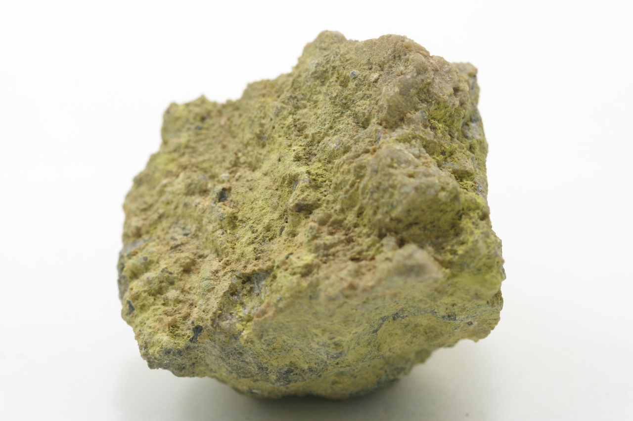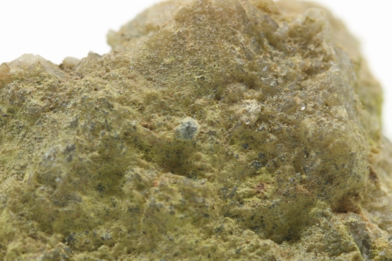 Povlaky žlutého bismutoferritu s šedou kuličkou eulytinu.
