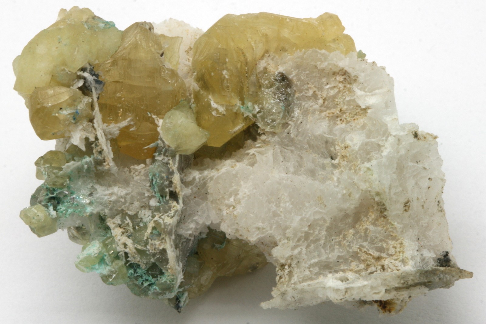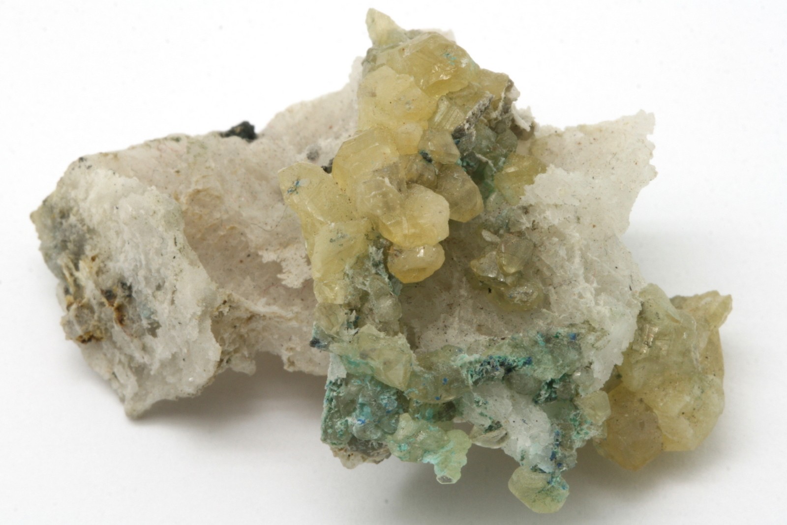 Kleiner Probe mit gelblichen Cerussitkristallen, die bis zu 13 mm groß sind .