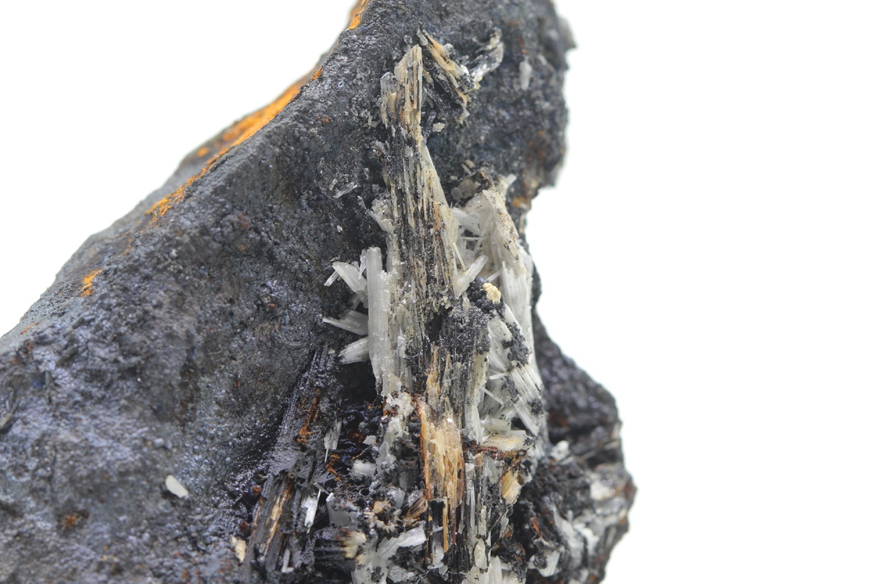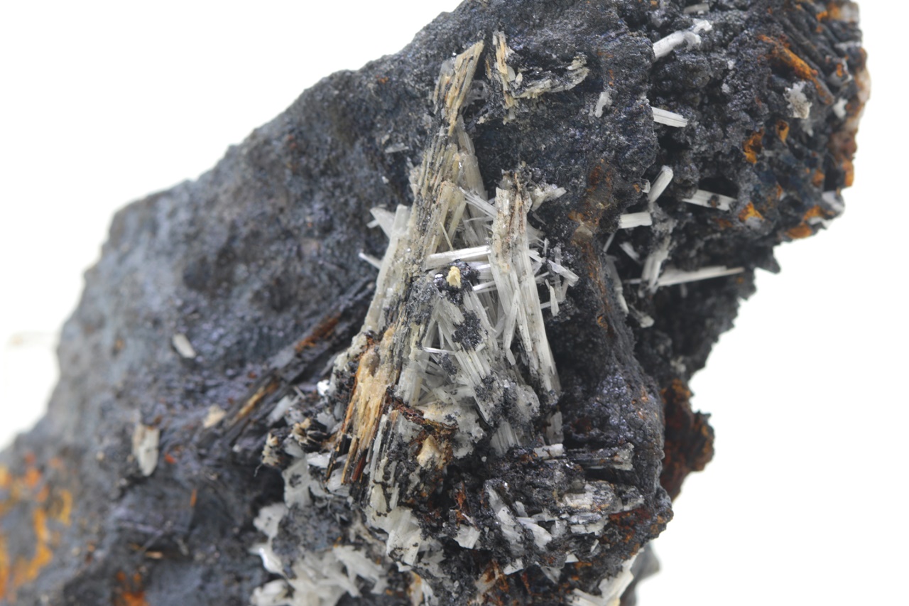 Weiße Kristalle des Bleicarbonats bis zu 1,5 cm groß.