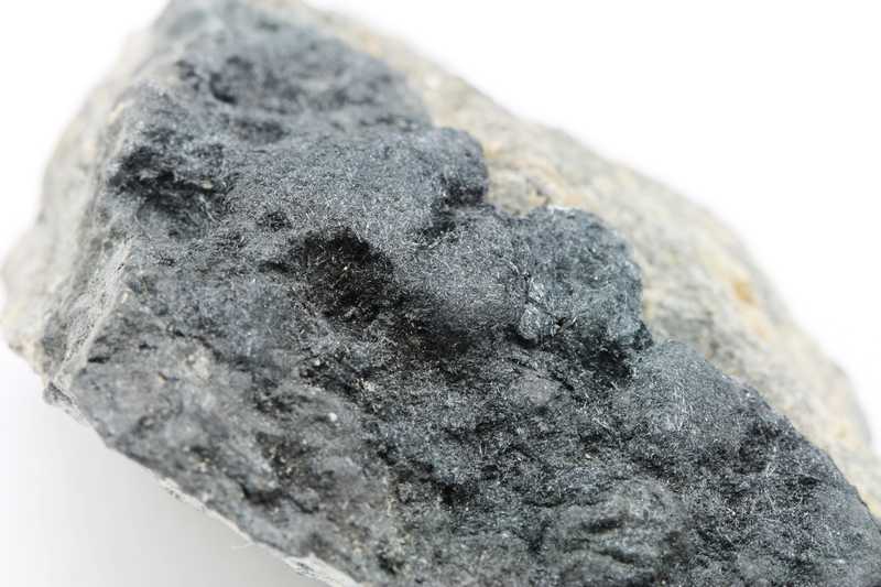 Probe eines Aggregats kleiner Boulangerit-Kristalle. Die Probe stammt aus Příbram.