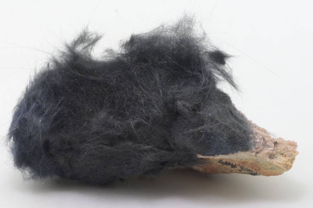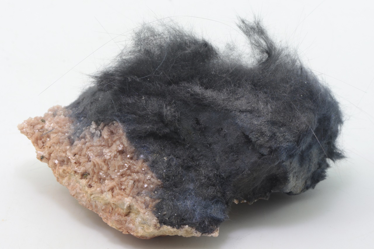 Lange haarähnliche Boulangerit-Kristalle, dicht auf Dolomit gewachsen. Das Exemplar muss im Geschäft abgeholt werden.
