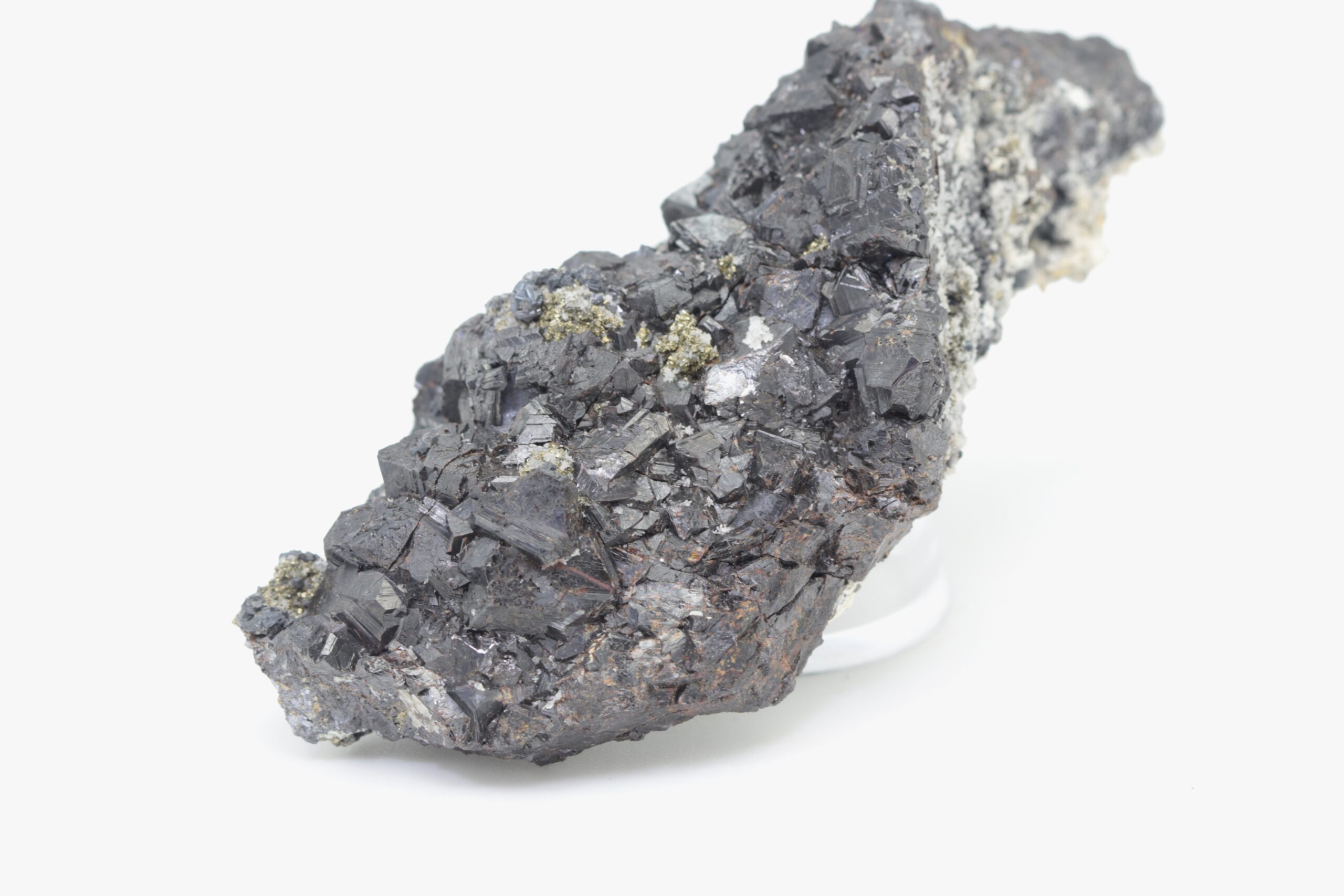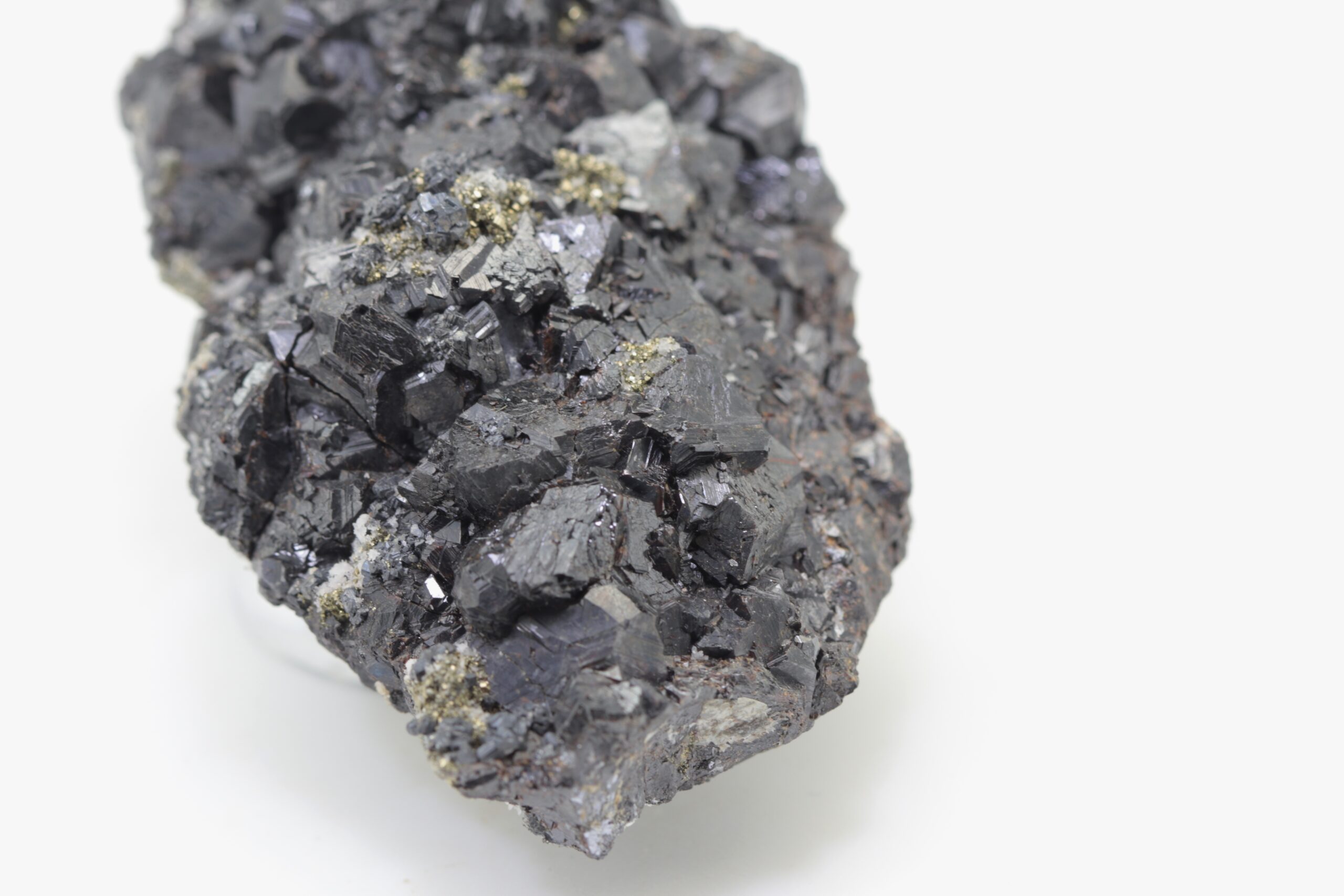 Bournonit bildet auf dem Exemplar grau gefärbte, stahlgraue Kristalle. Sphalerit bildet hier diamantglänzende, metallisch graue Kristalle, die bis zu 1 cm Größe erreichen und ineinander verzahnt sind. Stellenweise scheint durch die Kristalle des Sphalerits eine hellbraune Farbe hindurch. Es handelt sich um ein reichhaltiges Exemplar dieser Sulfide aus der Lokalität Cavnic, Rumänien.