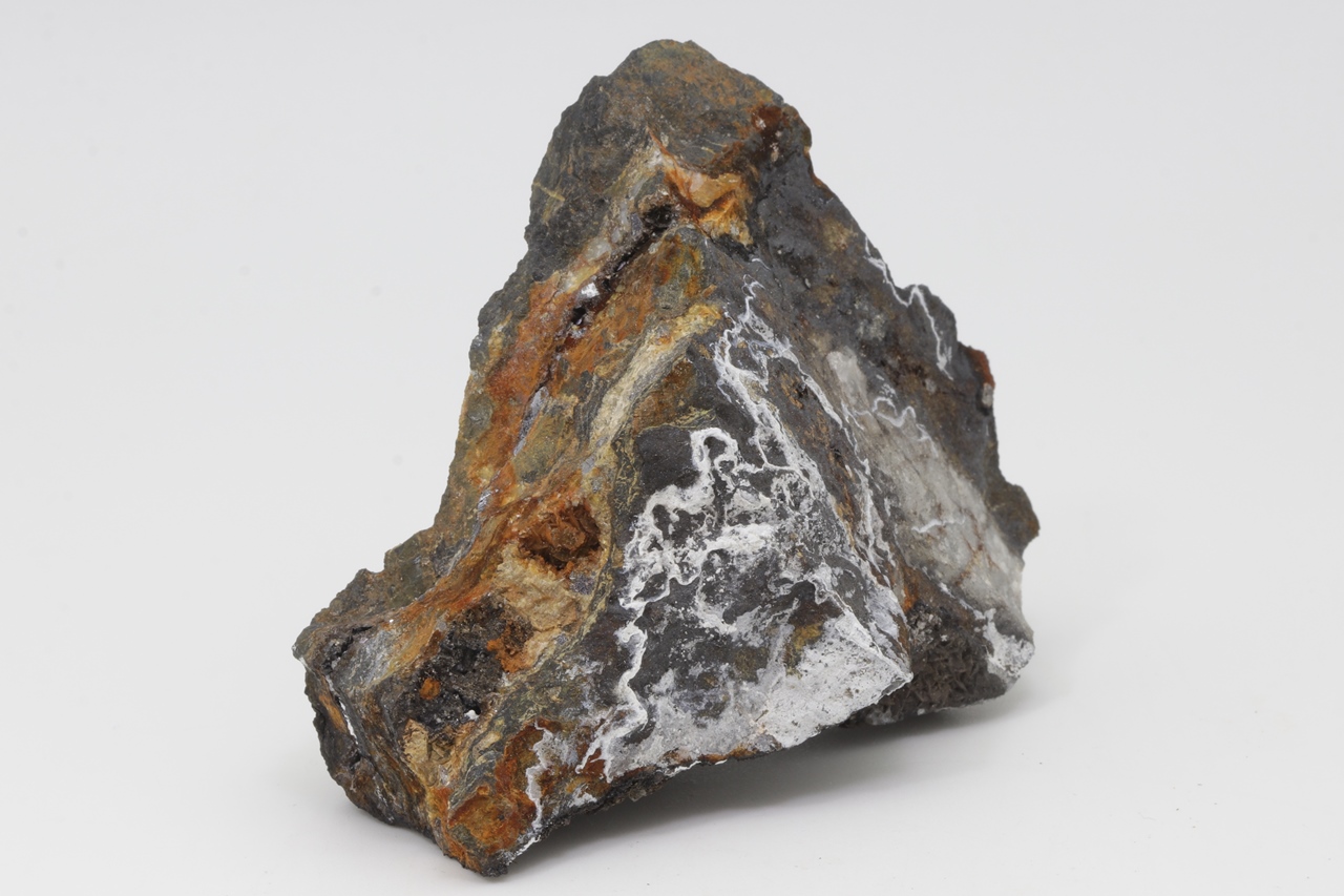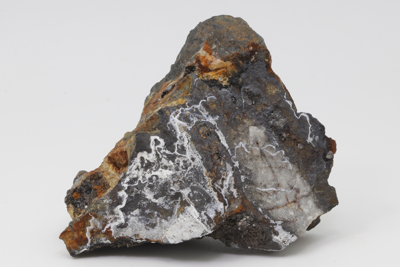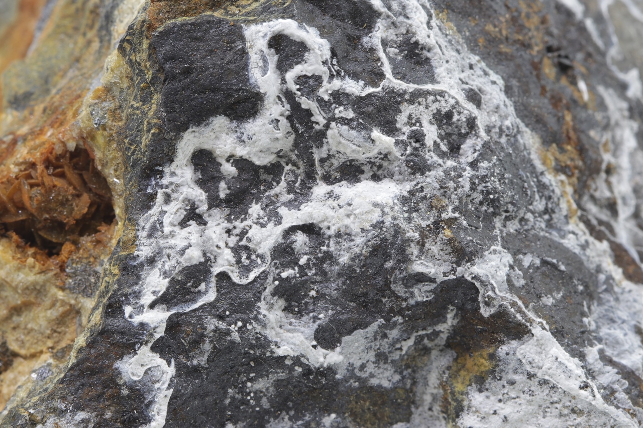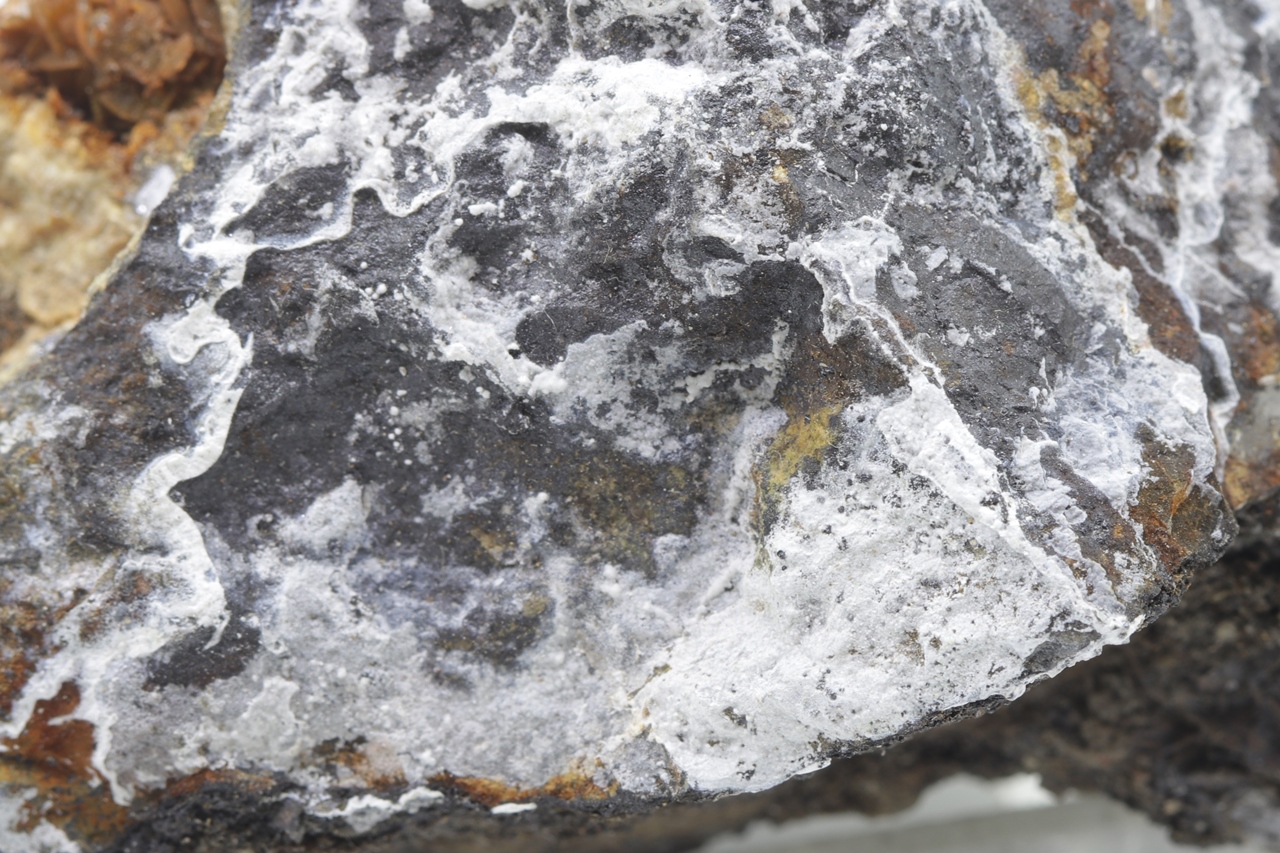 Weiße Überzüge des sekundären Zinkminerals.