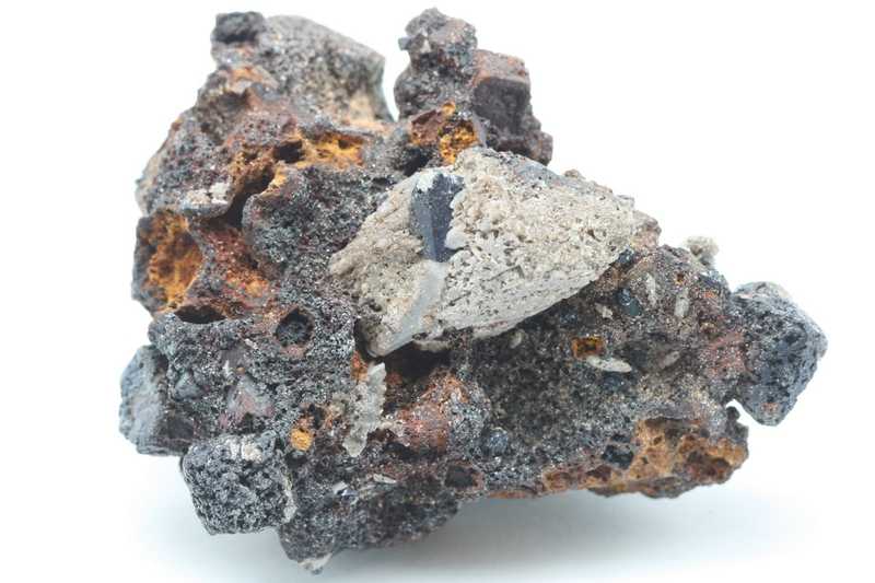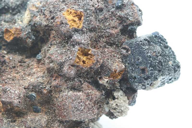 Große Kristalle von metallisch schwarzem Brookit. Der größte Brookit-Kristall hat eine Größe von ca. 1 cm.