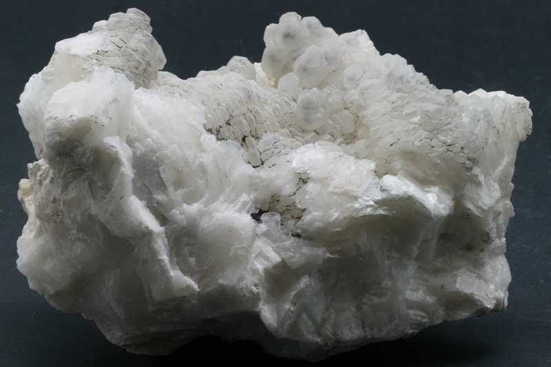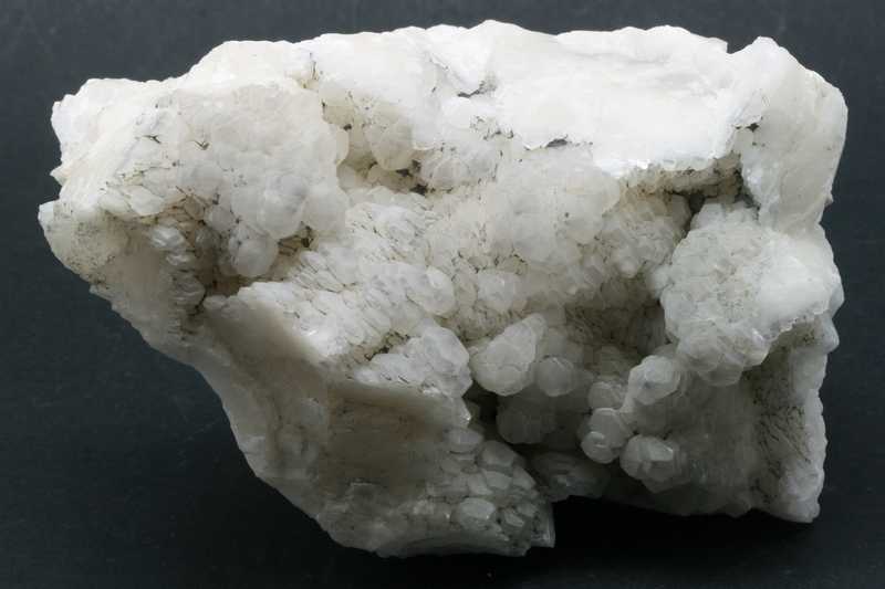 Schönes Exemplar von Calcit aus Sýkořice, Vulkaniten des Křivoklát-Gebirges. Druse von Calcit-Kristallen, eine Kombination von sogenannten Kanonen- und Nagelkopf-Calciten .