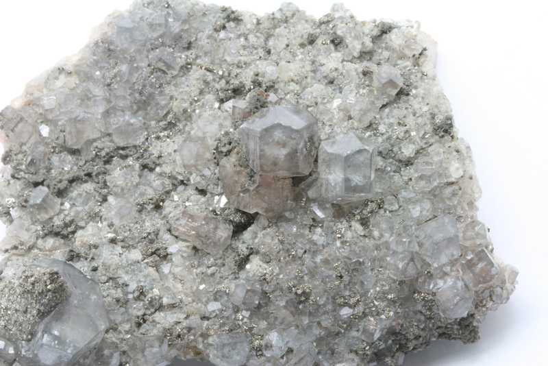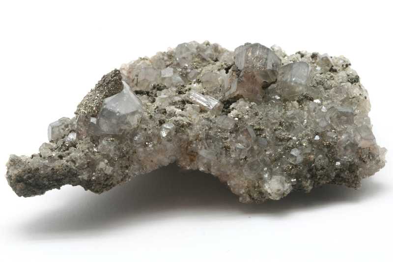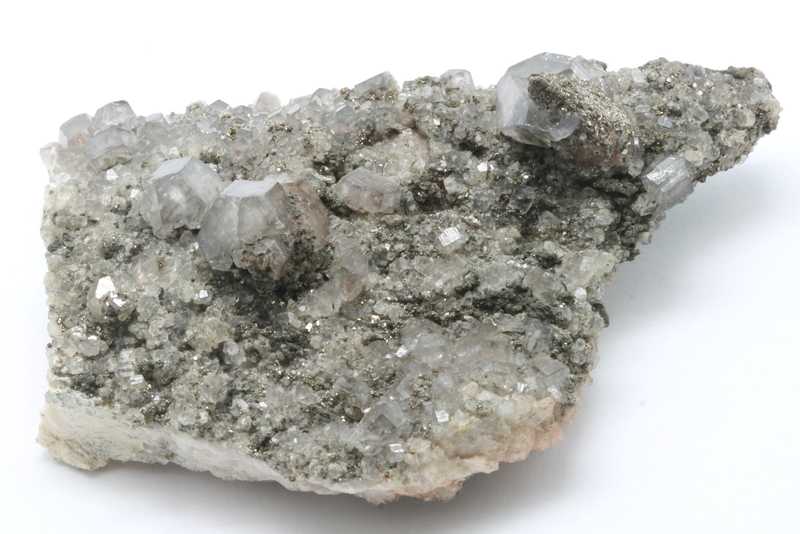Schönes Beispiel für einen Calcit aus Příbram. Druse von Calcit-Kristallen mit einer Größe von bis zu 12 mm, bewachsen mit Pyrit.