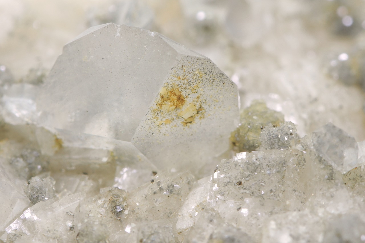 Durchsichtige, rhomboedrische Calcitkristalle bis zu 9 mm Größe.