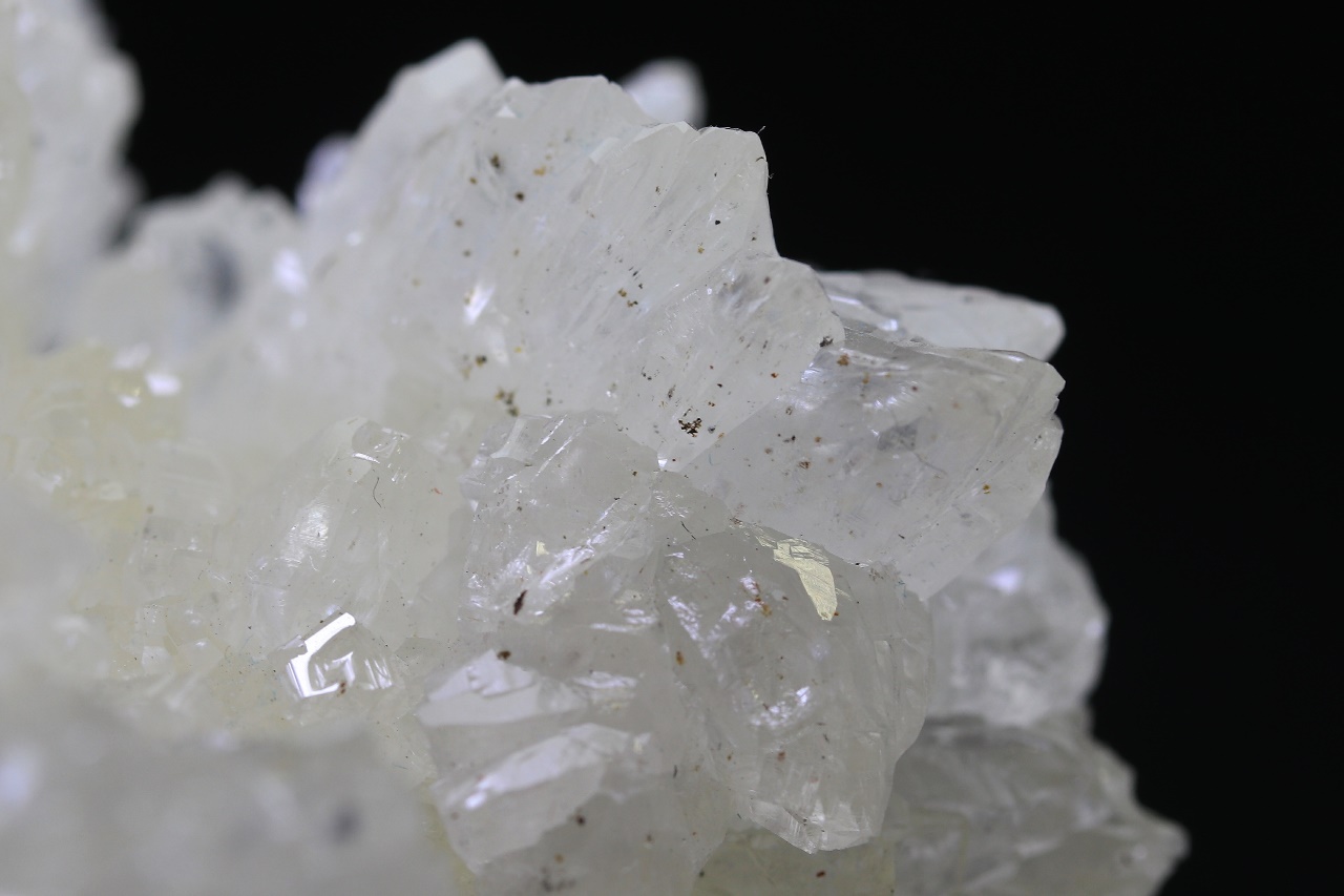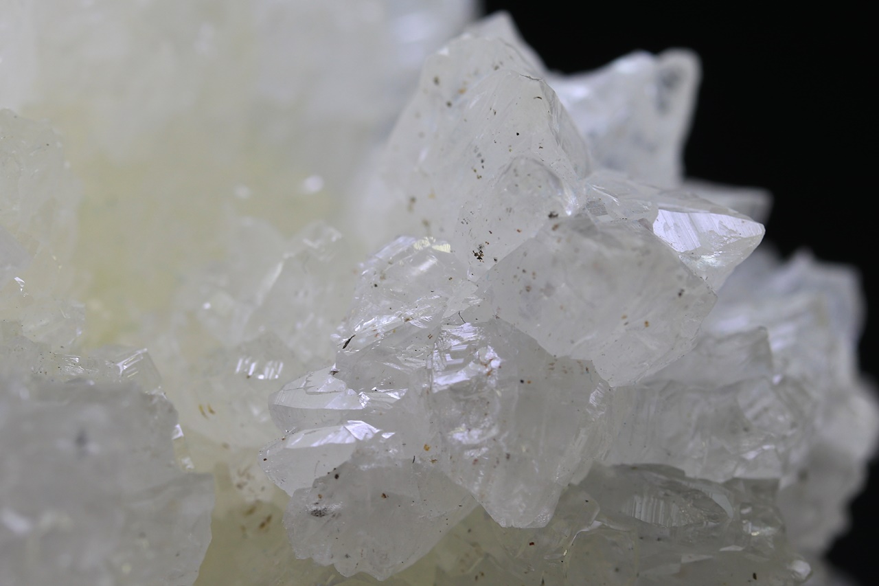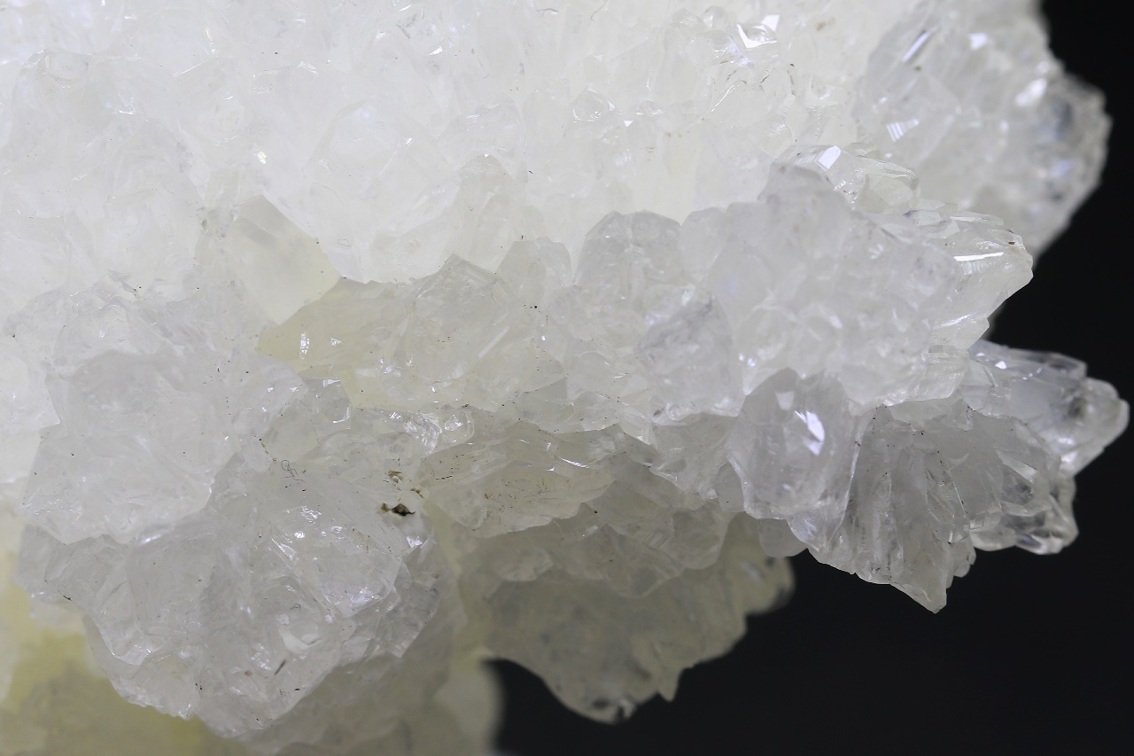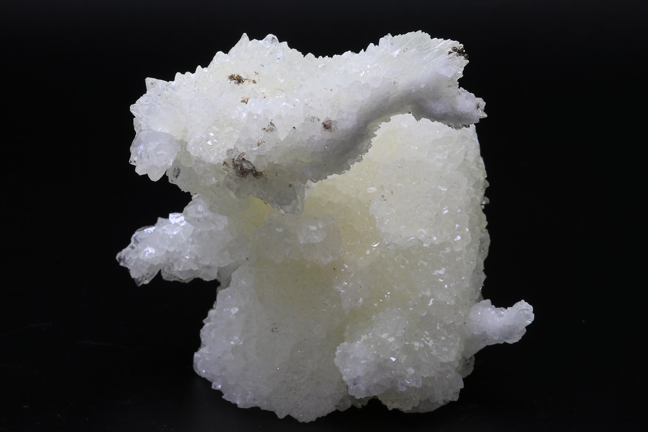 Ein ungewöhnlicher unregelmäßiger Stalaktit, bewachsen mit glänzenden Kristallen aus klarem Kalzit.