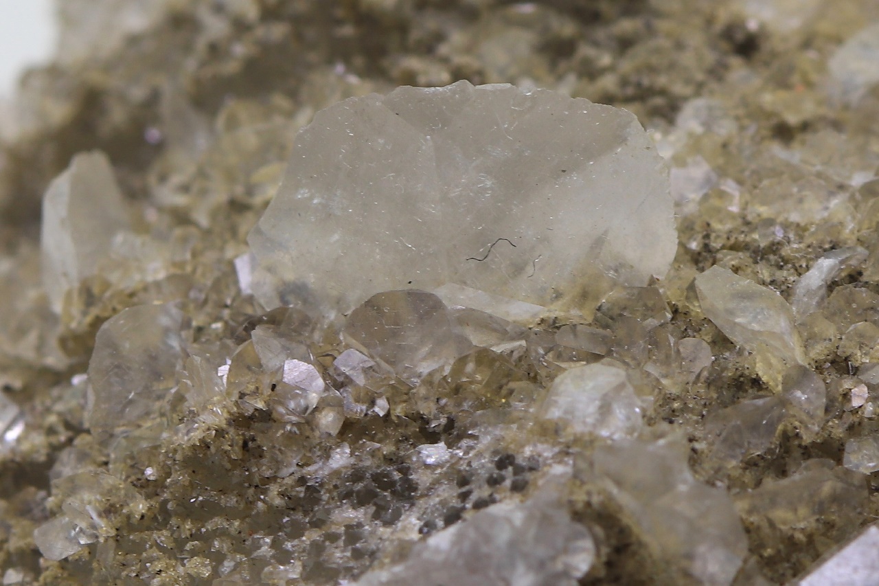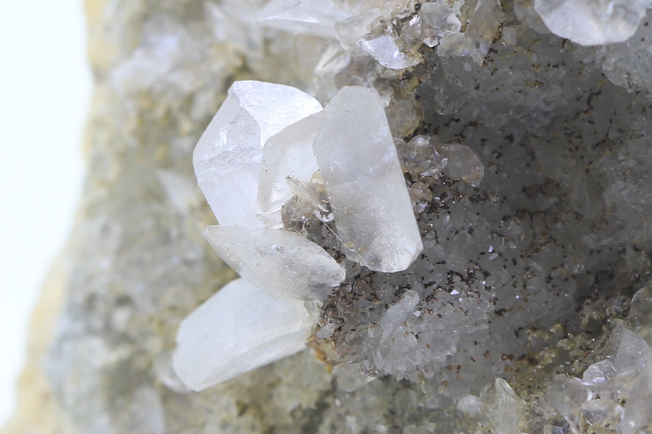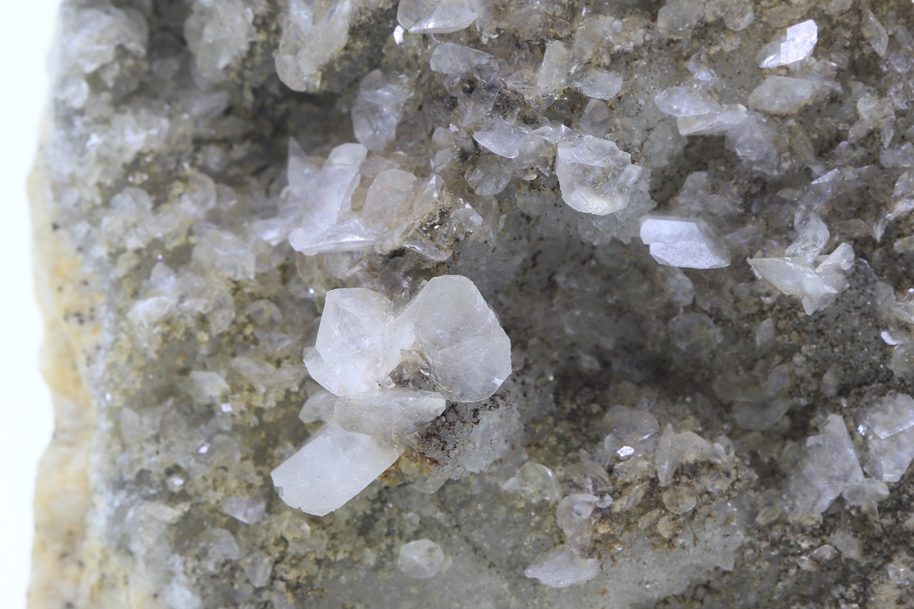Kristalle von weißem bis klarem Nagelkopf-Kalkspat bis zu 1 cm groß.