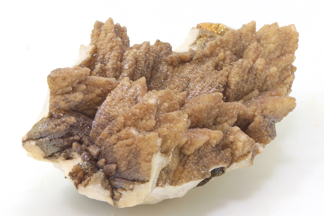 Kalcitkristalle mit ausgeprägter ocker Farbgebung, typisch für diesen Fundort.