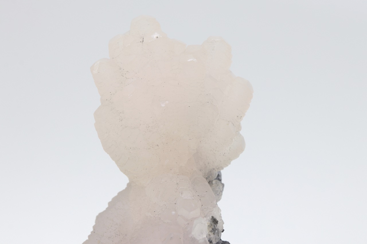 Beidseitiger, radialer Kalkit-Aggregat, gewachsen auf glänzendem Galenit mit Chalkopyrit.