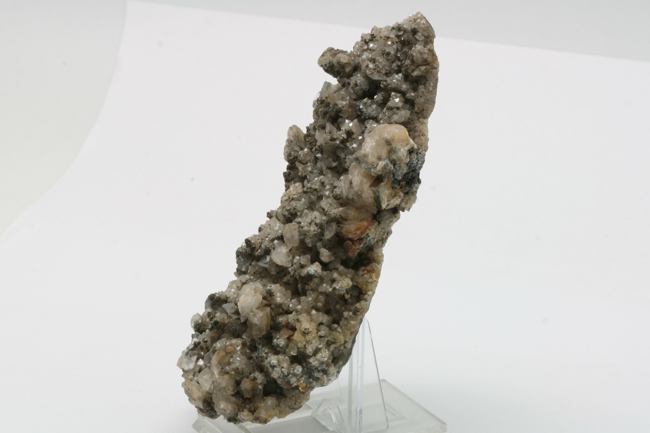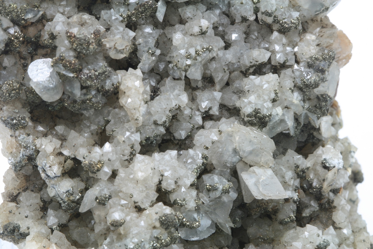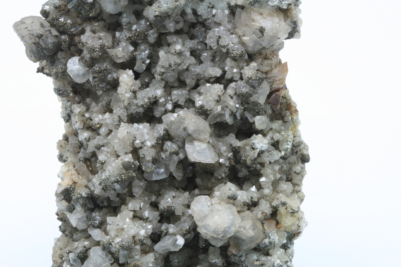 Ästhetische Probe von Kalcit gewachsen auf Quarz mit kleinen Pyrit-Kristallen.
