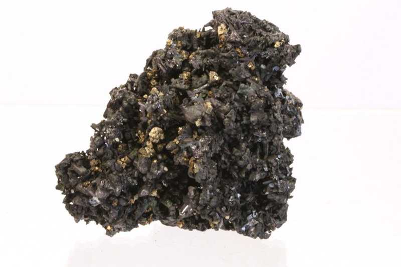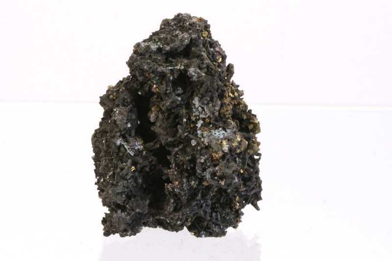 Schönes Exemplar von schwarzem Bleikarbonat mit Pyrit-Kristallen aus Mapimi. Säulenförmige Cerussit-Kristalle bis zu 10 mm lang .