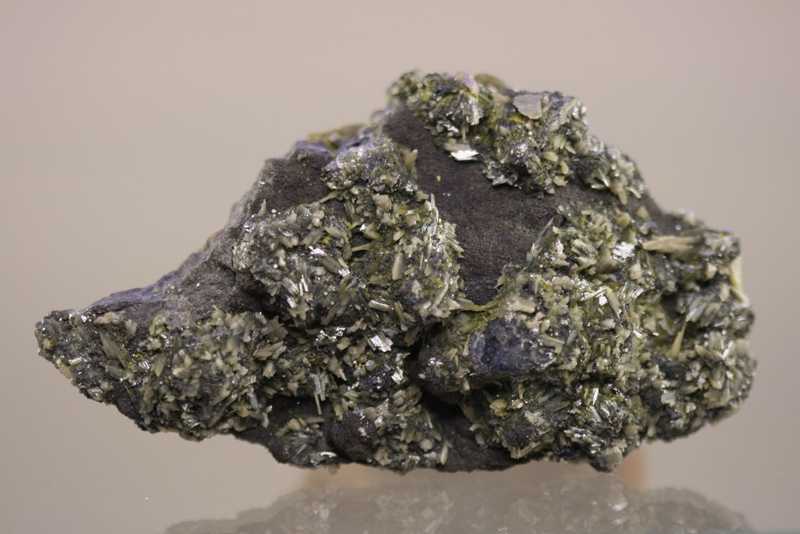 Reicher Cerusit-Probe vom Standort Trzebynia aus dem Jahr 1983. Glänzende, gestreckte Krystalle des ockerfarbenen Cerusits, die auf feinkristallinen Galenit gewachsen sind.