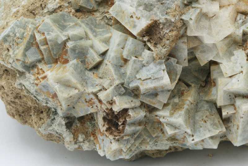 Grünlich schillernde Chabazit-Kristalle. Die Größe der Chabazit-Kristalle erreicht bis zu 18 mm.
