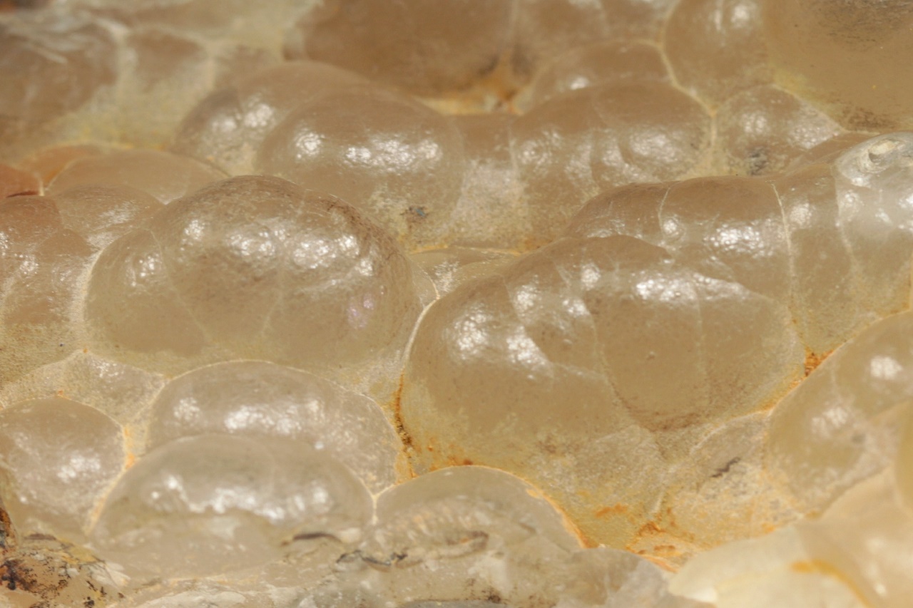 Nádherná ukázka lesklých ledvinitých až hroznovitých agregátů světle žlutého aragonitu.