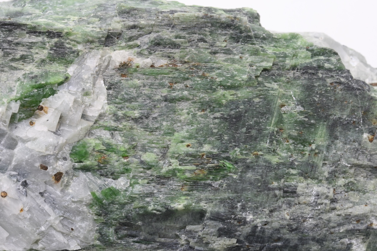 Naturbelassene Stufe einer Chrom-reichen Varietät des Diopsids, welche durch ihre grüne Farbe besticht.