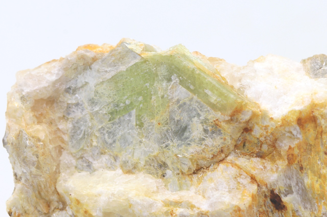 Zwillingskristall des hellgrünen Chrysoberyls mit 2,5 cm Größe.