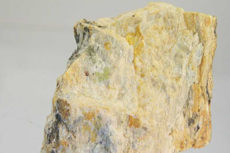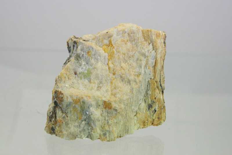 Ukázka kleines, tafeliges Chrysoberyll-Kristalls aus Maršíkov. Probe eines Pegmatits mit olivgrünem Chrysoberyll.