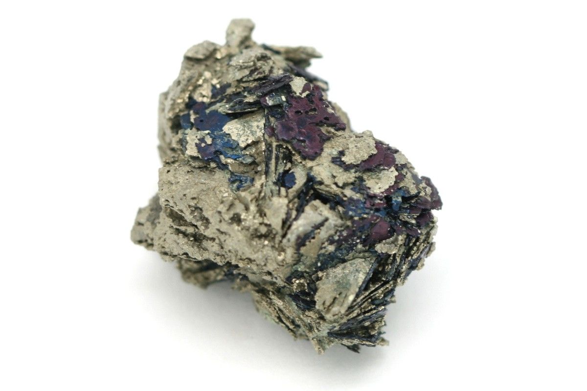 Qualitätsstufe schwarzer schuppiger Covellin-Kristalle mit schillernden Anlauffarben aus Bor.