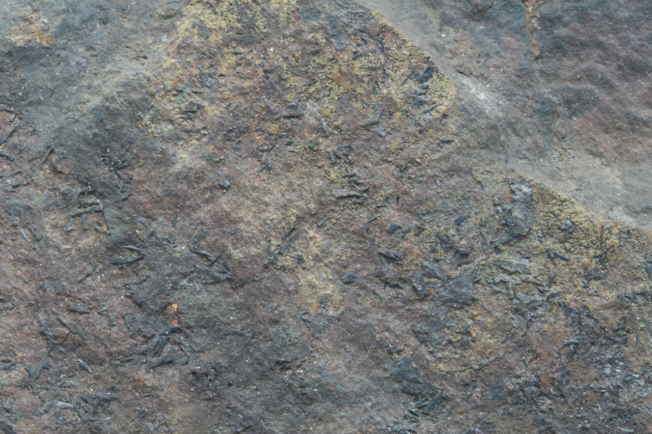 Kleine schwarze Kristalle von Eisensilikat.