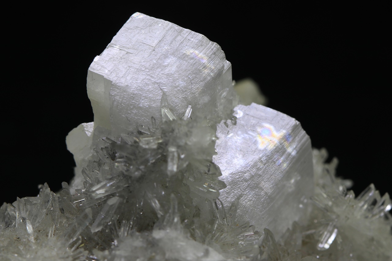 Cluster von zwei sehr reinen Dolomit-Rhomboedern auf einer Kristalldruse.