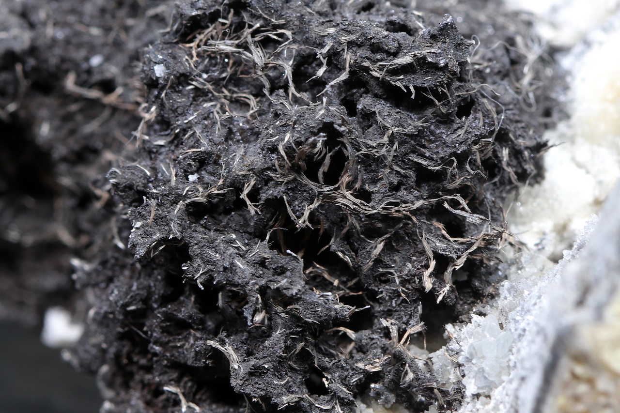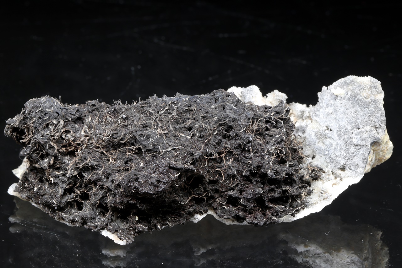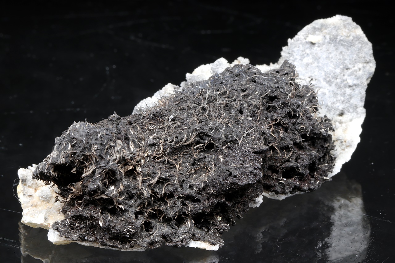 Reichlich gewachsene drahtförmige Kristalle des metallisch glänzenden Dyskrazit in schwarzem Arsen auf dem Muttergestein. Die Stufe kann nicht versandt werden, sie kann nur persönlich in unserem Geschäft abgeholt werden .
