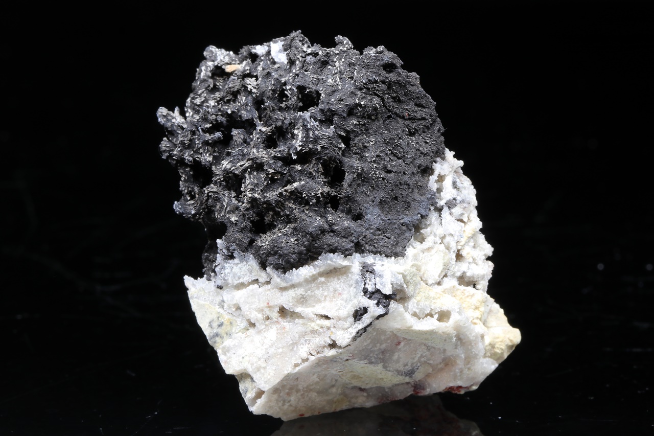 Feine, filzige Dyskrazit-Kristalle auf schwarzem Arsen gewachsen. Eine Probeversendung ist nicht möglich, sie kann nur persönlich in unserem Geschäft abgeholt werden.