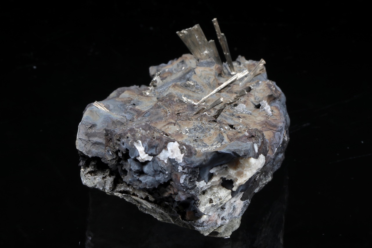 Nádherný vzorek kovově lesklých krystalů dyskrazitu vystupujících z černého arsenu. Největší krystal 2 cm velký. Vzorek nelze zaslat, je možné jej vyzvednou pouze osobně v naší prodejně.