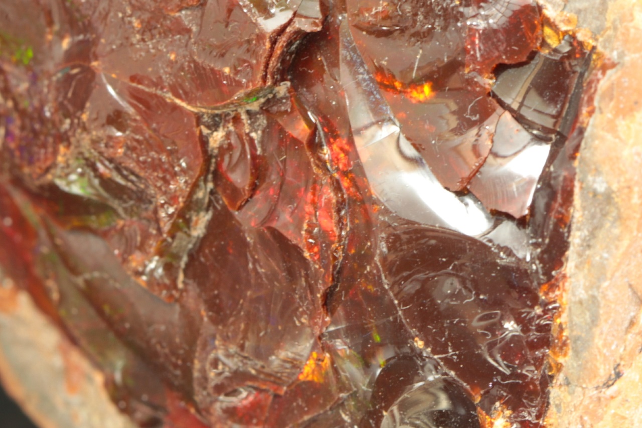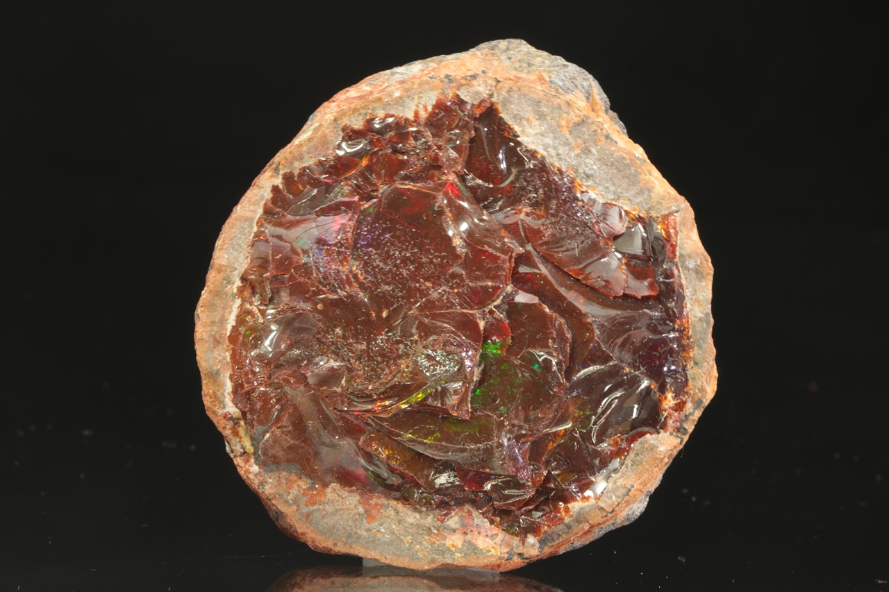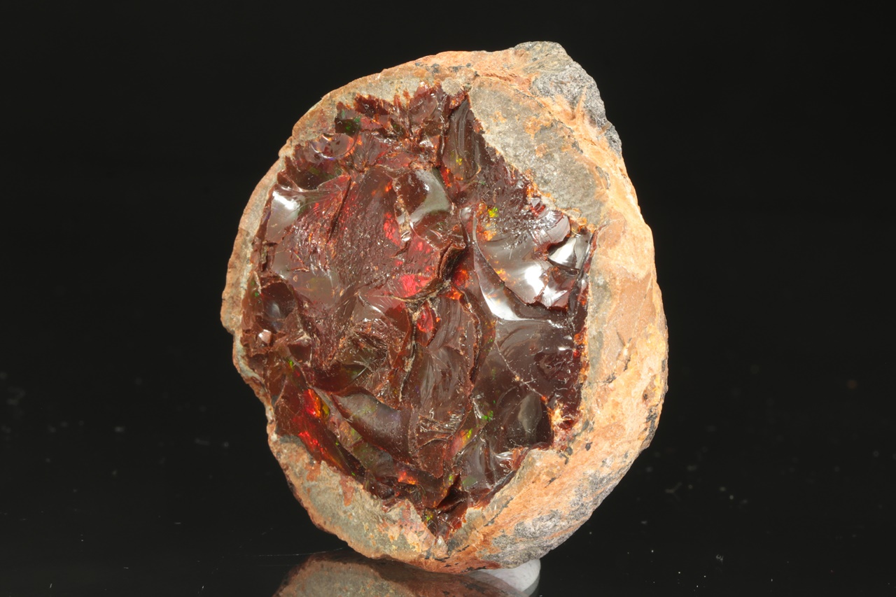 Große Nodule von orangefarbenem Opal mit auffälliger rot-grüner Opaleszenz.