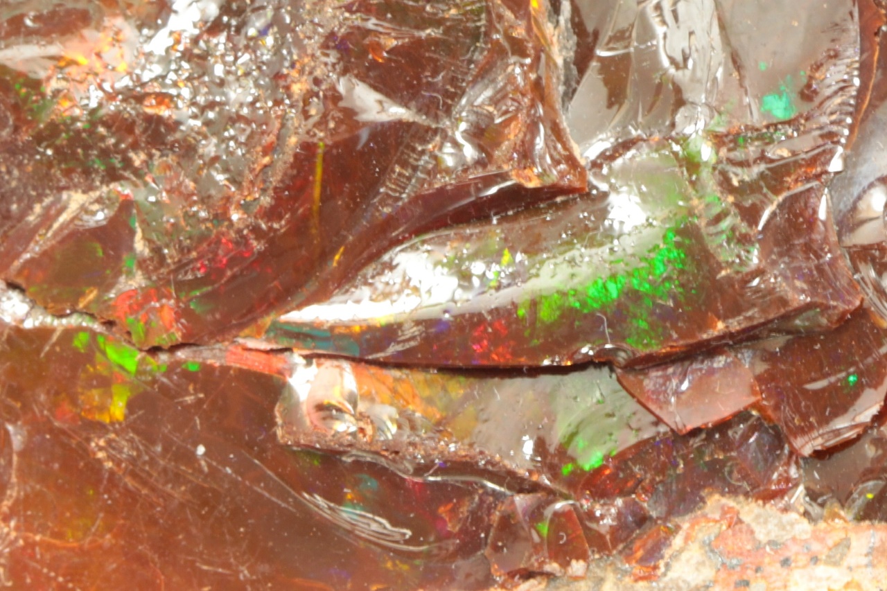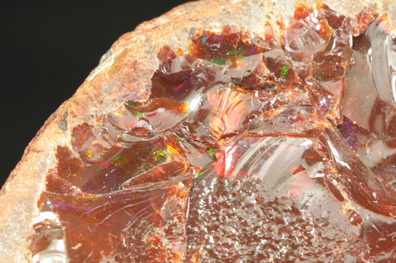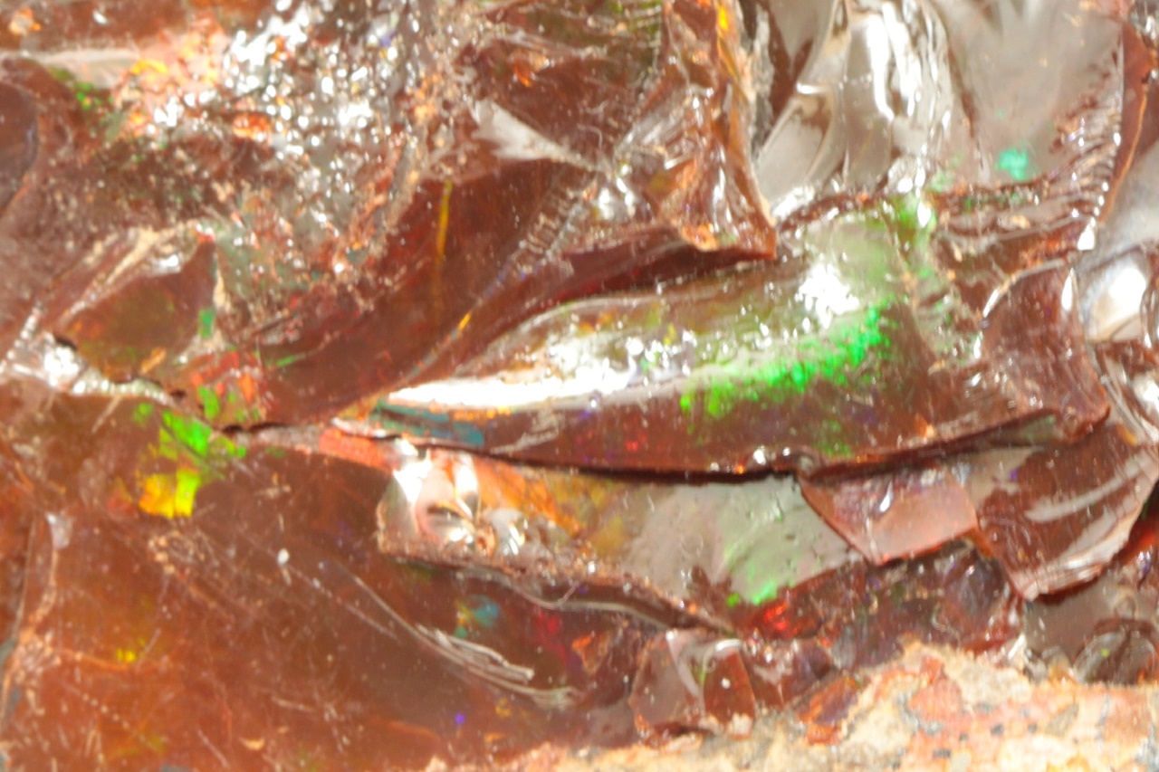 Große Nodule von orangefarbenem Opal mit auffälliger rot-grüner Opaleszenz.