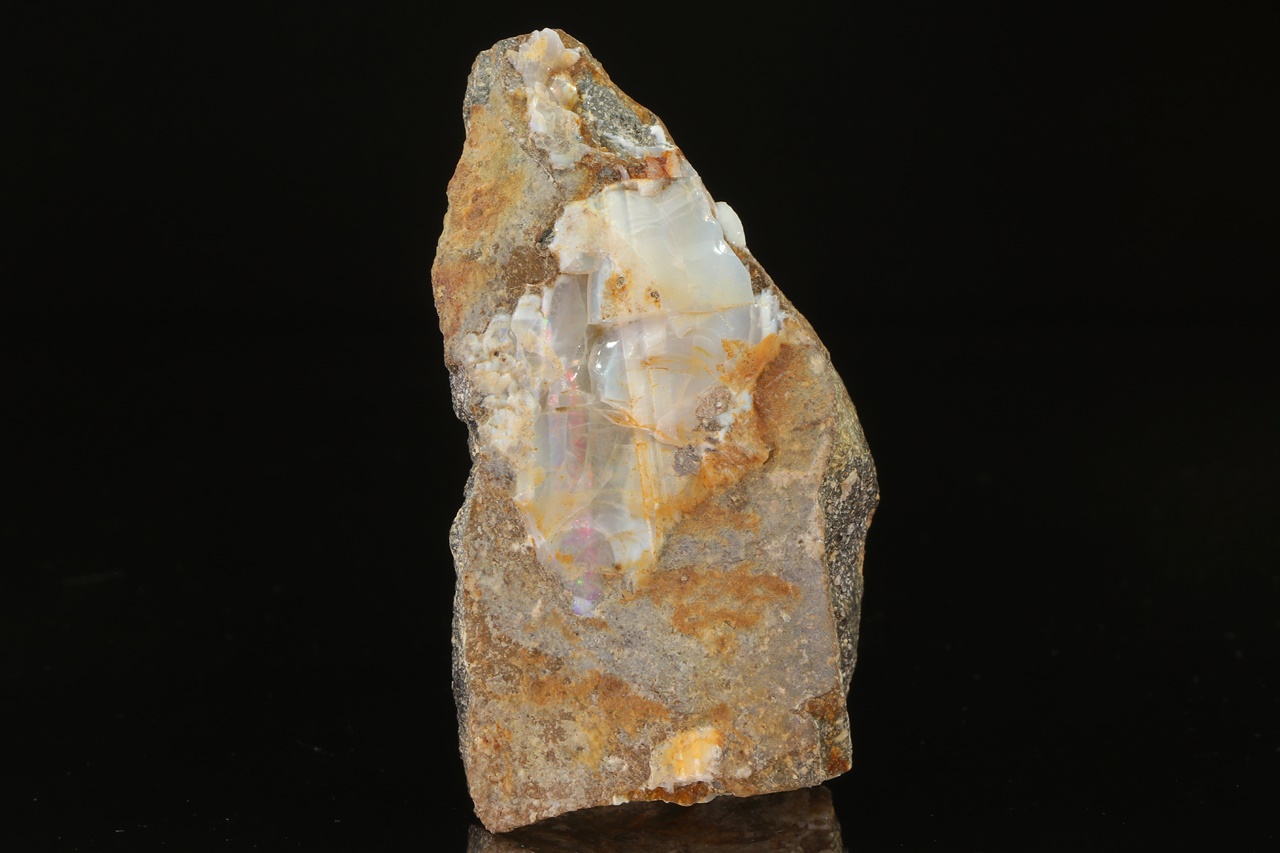 Überzug des wertvollen Opals mit starker rot-grüner Opaleszenz ist auf Andesit gewachsen.