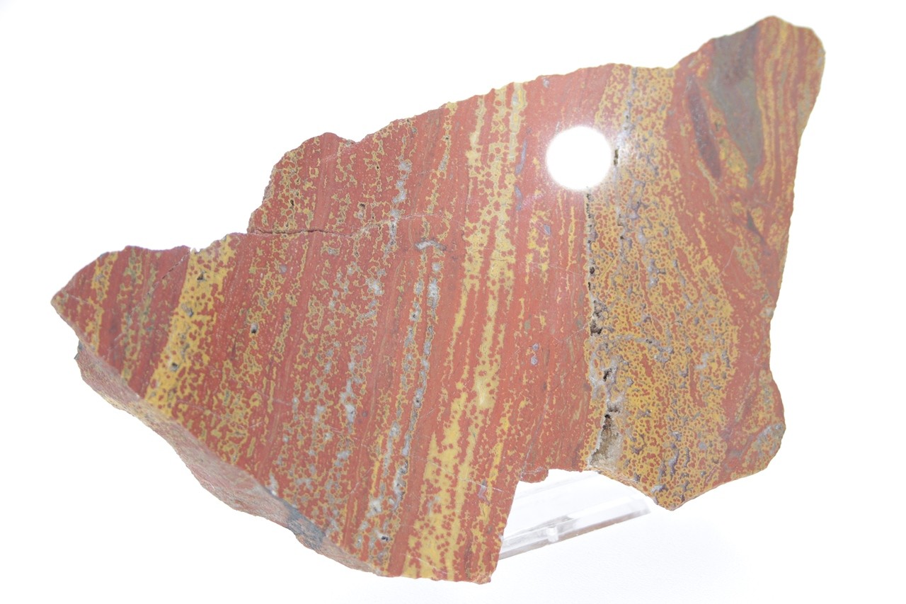 Poliertes Exemplar von gelb-rotem, gestreiftem Eisenstein mit sehr geschätzten Punkten.