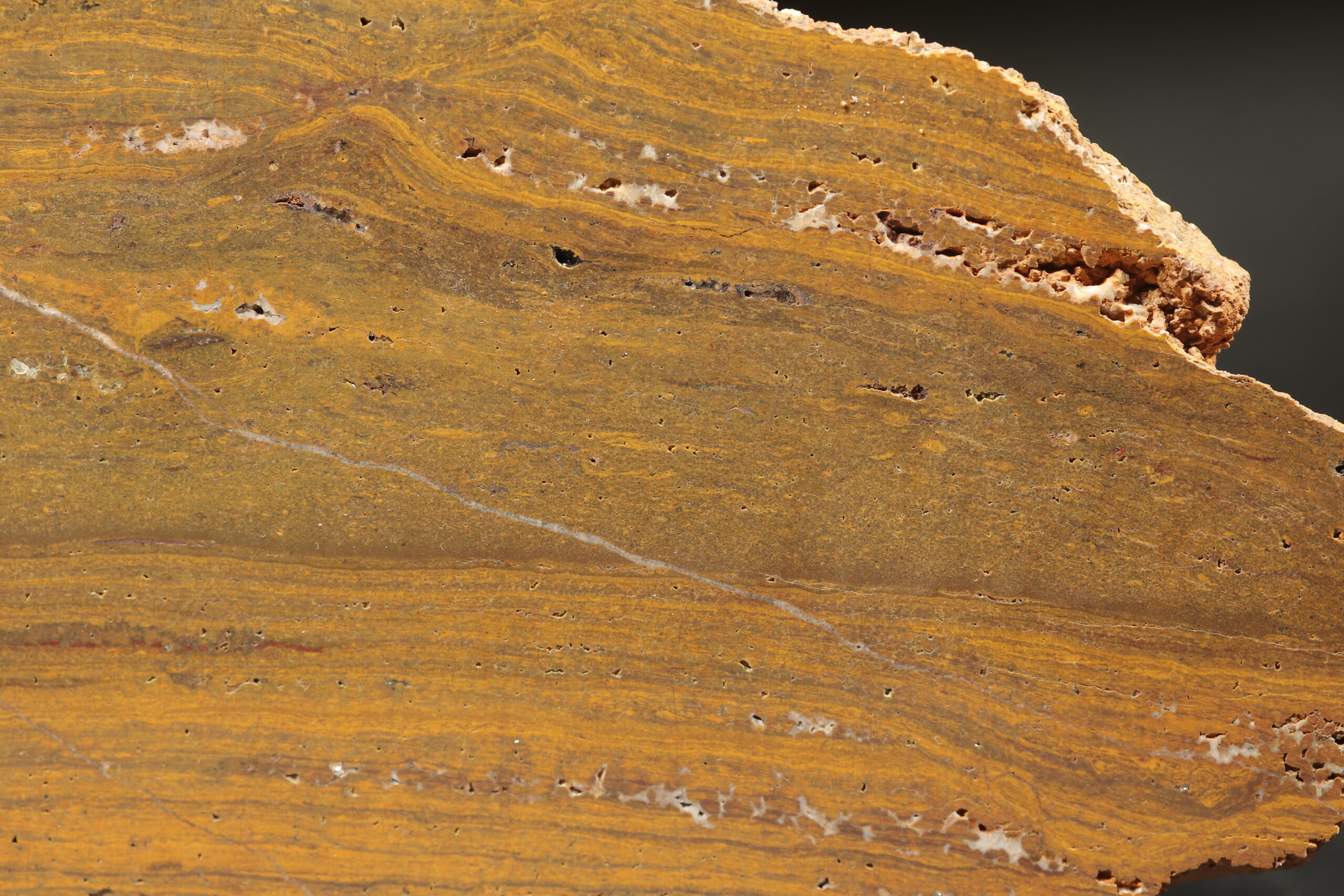 Außergewöhnlich großer Muster eines eisenhaltigen Quarzes. Der Stein weist ein interessantes gestreiftes Muster auf und ist auf einer Seite poliert.
