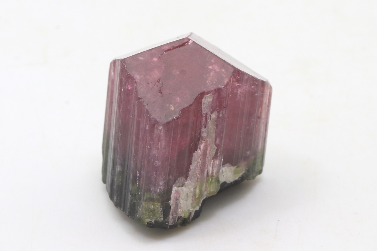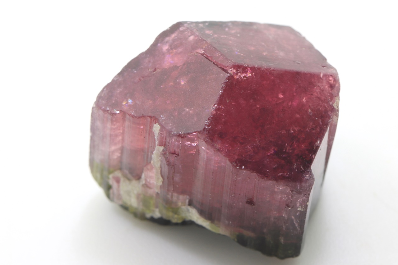 Elbait mit weinroter Spitze, die von einem Trapezoeder abgeschlossen wird.