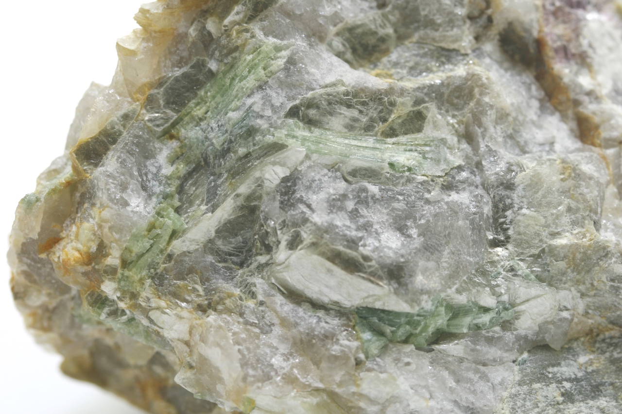 Grüne Turmaline bis zu 13 mm Größe mit rosafarbener Lithionglimmer.