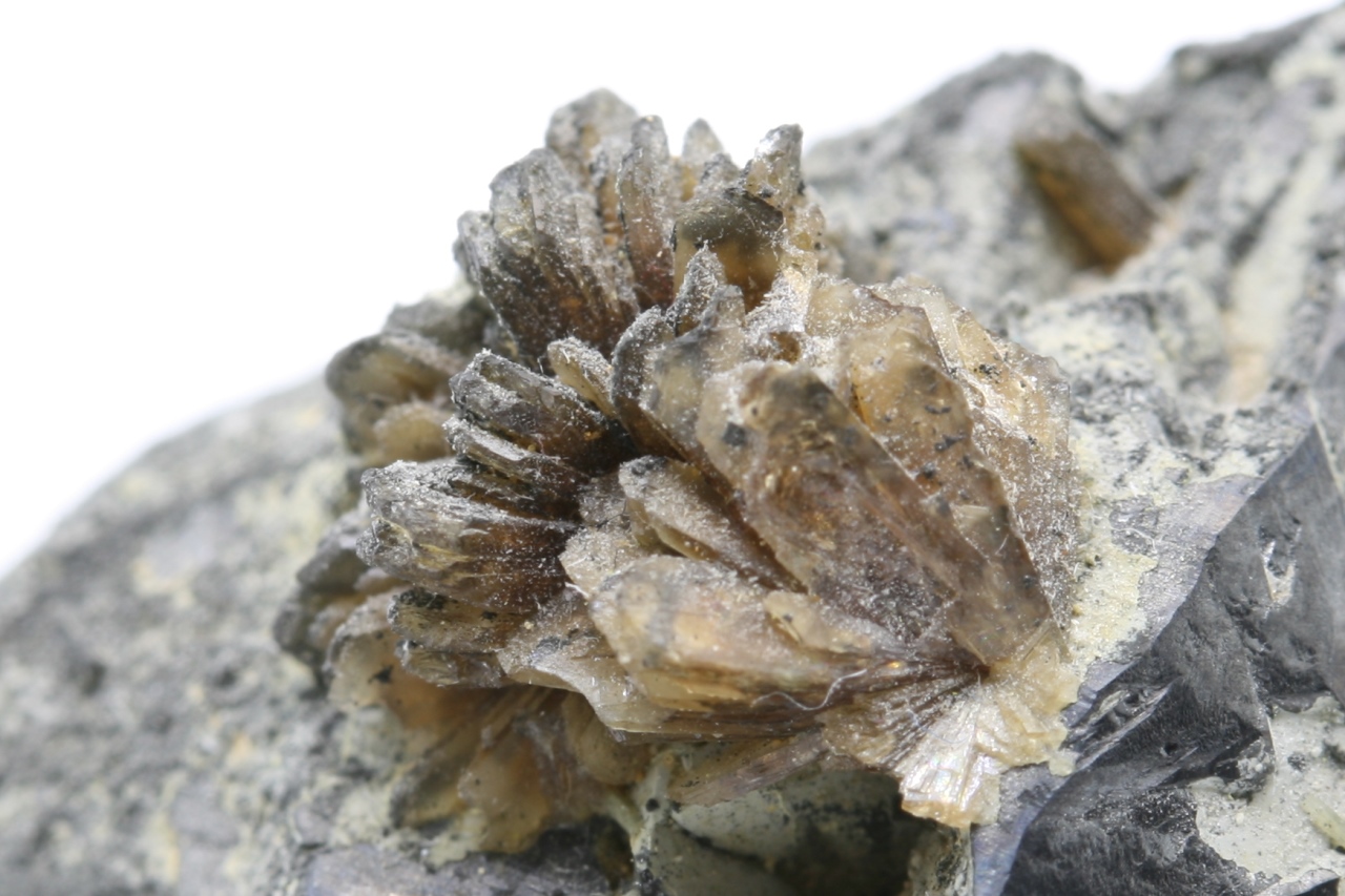 Sträuchlein von Manganphosphat-Kristallen gewachsen auf Kassiterit.