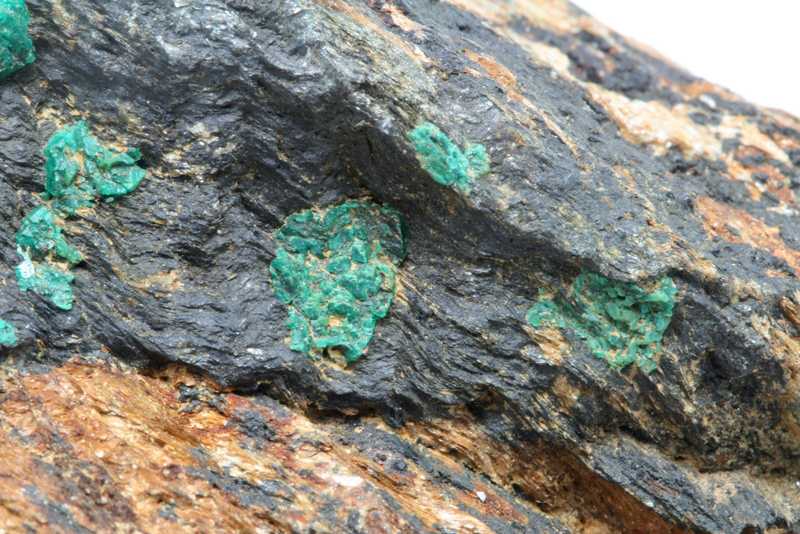 Grüne Aggregate aus Kupferarsenat.. Euchroit aus der Typlokalität von bis zu 3 mm Größe.
