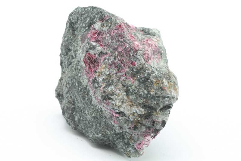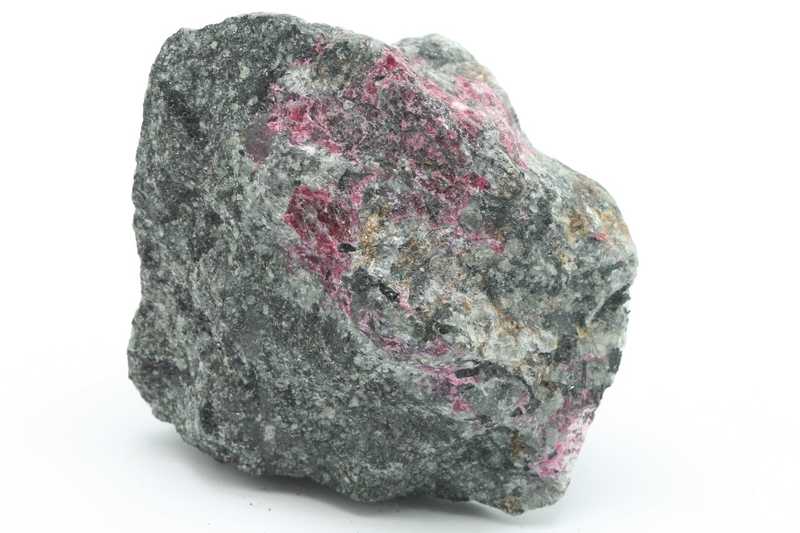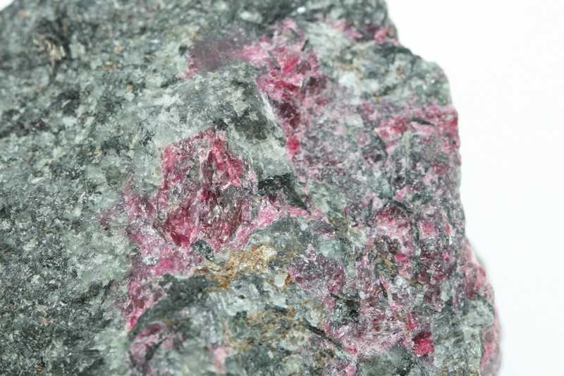 Zrna weinrot des Eudialyts. Eudialyt aus der bekannten Lokalität auf der Halbinsel Kola.
