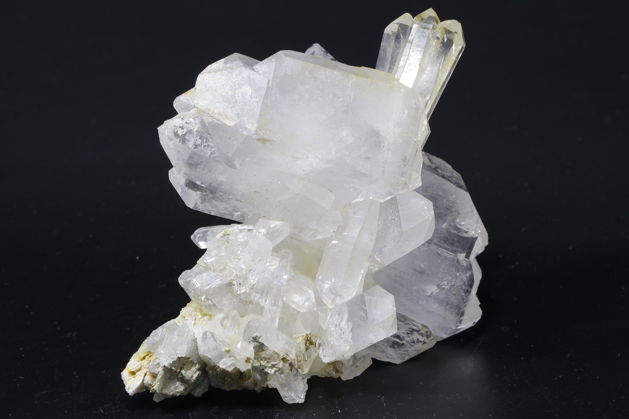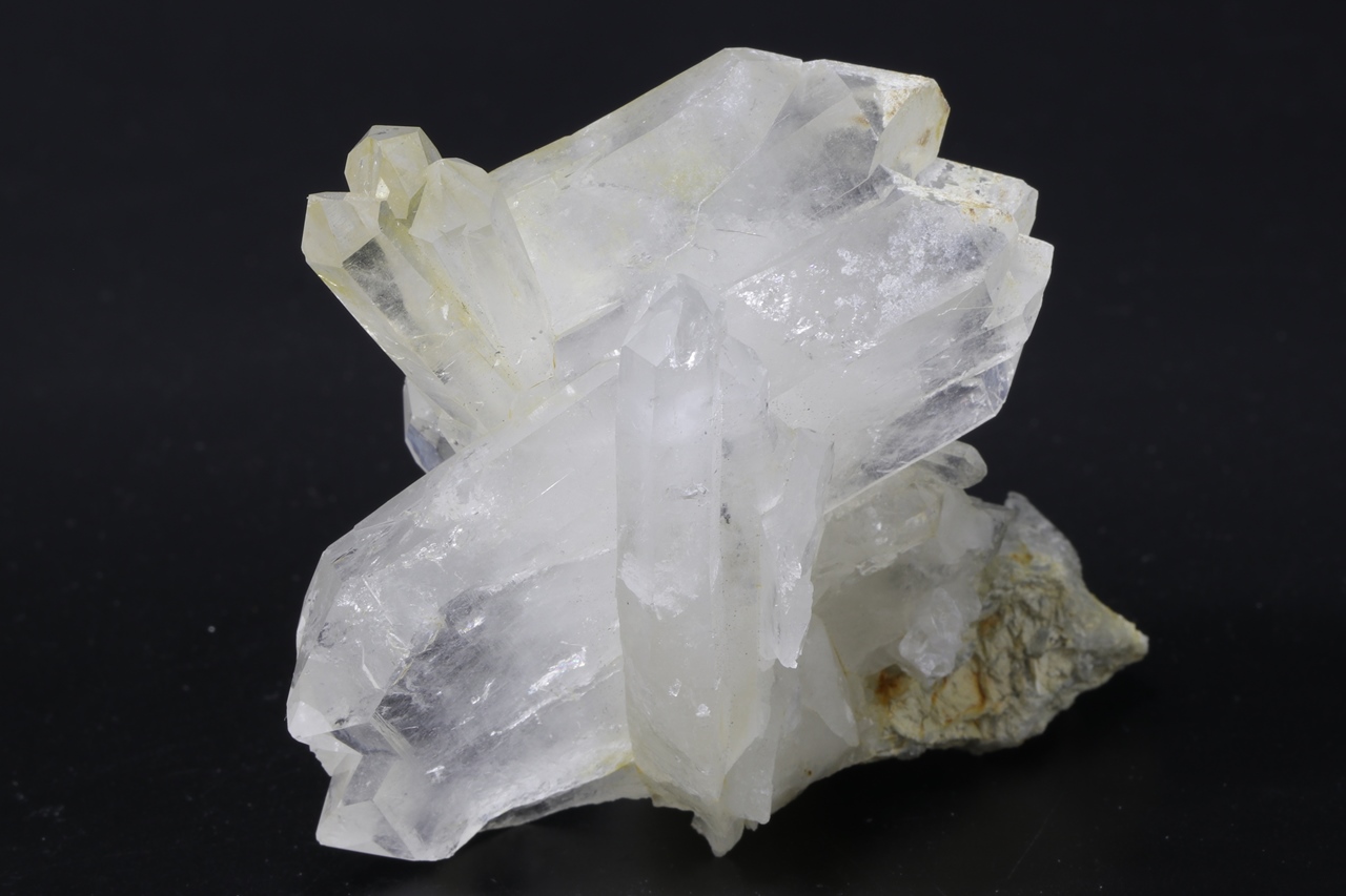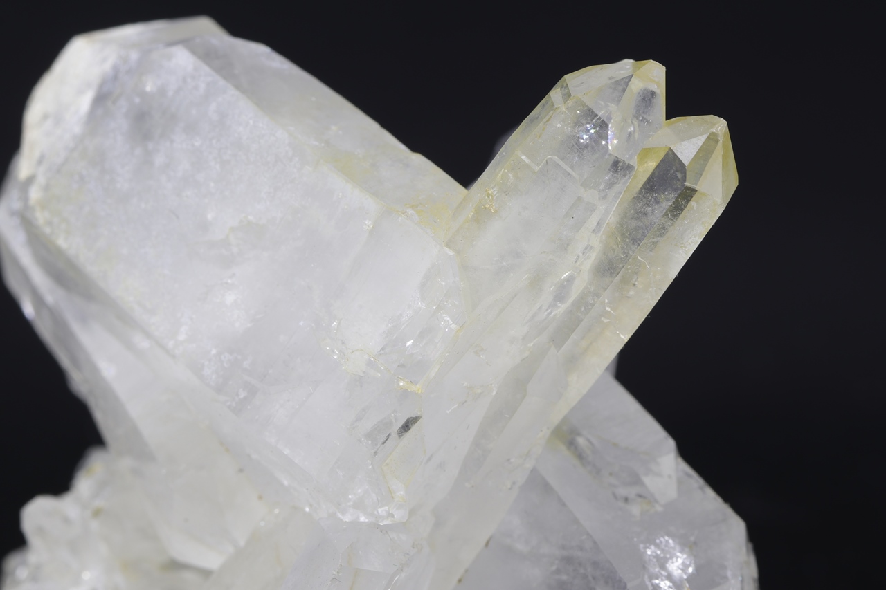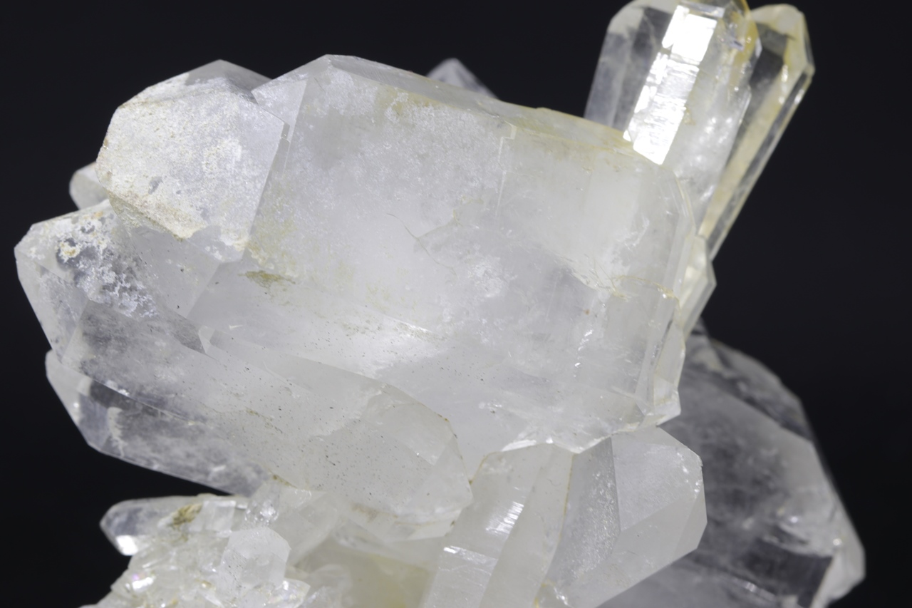 Ungewöhnliche tafelförmige Quarzkristalle, die parallele Verwachsungen bilden.
