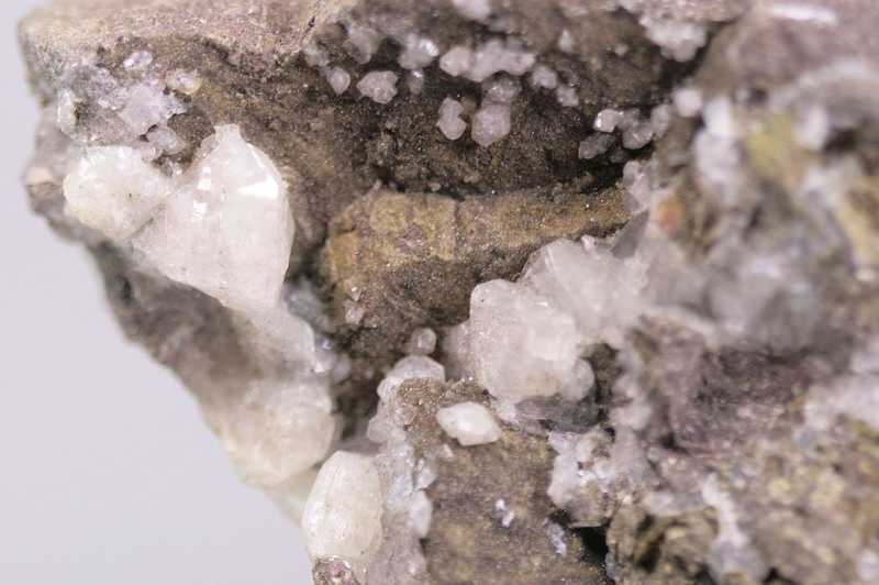 Kristalle von Fakolith aus der Lokalität Kozákov. Beispiel für durchsichtige, linsenförmige Kristalle von Chabasit-Fakolith aus Kozákov.