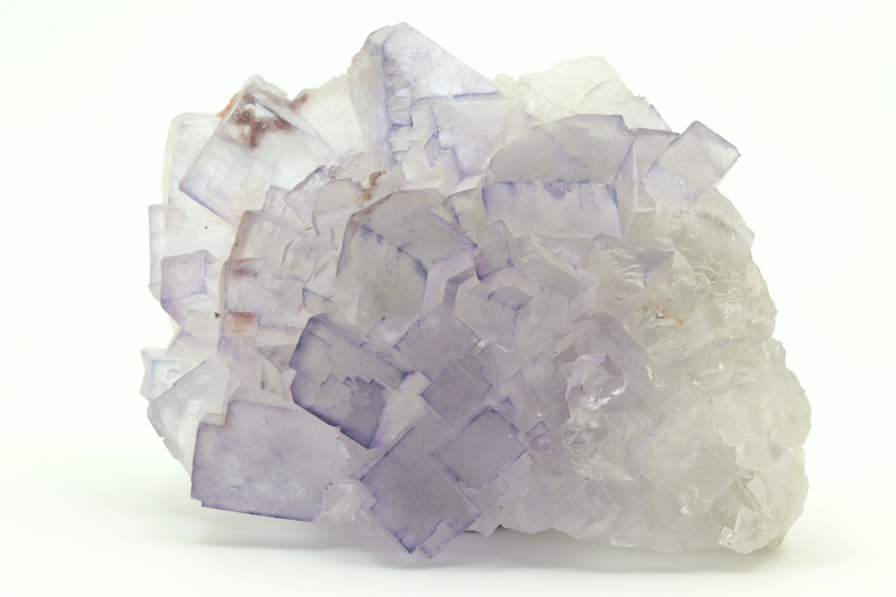 Fluorit bildet große, glasglänzende, kubische Kristalle von hellvioletter Farbe. Die einzelnen Würfel von Fluorit erreichen eine Größe von über 1,5 cm. Die einzelnen Würfel setzen auch aufeinander und bilden so einen großen Aggregat. Es handelt sich um ein ästhetisch sehr ansprechendes Exemplar dieses Halogenids, das aus Marokko stammt.