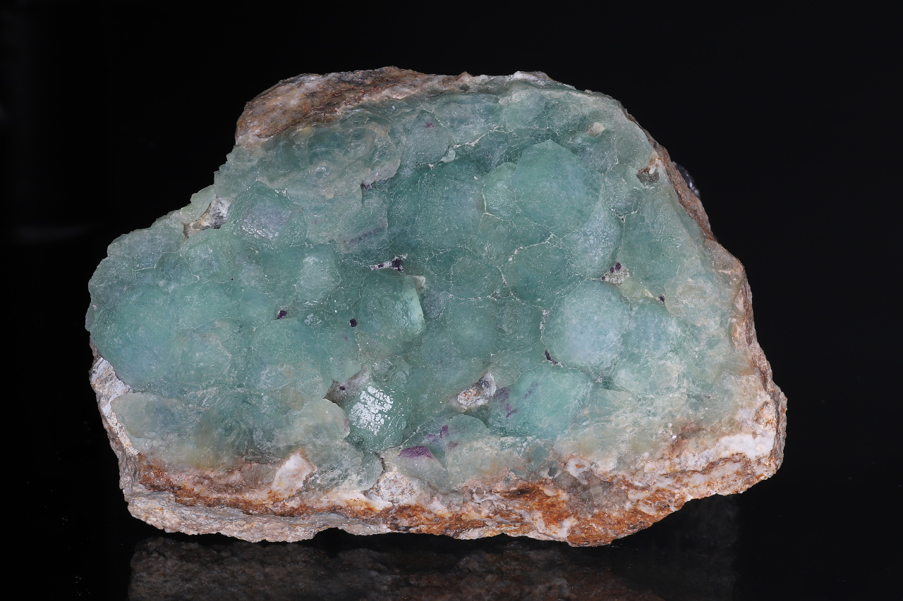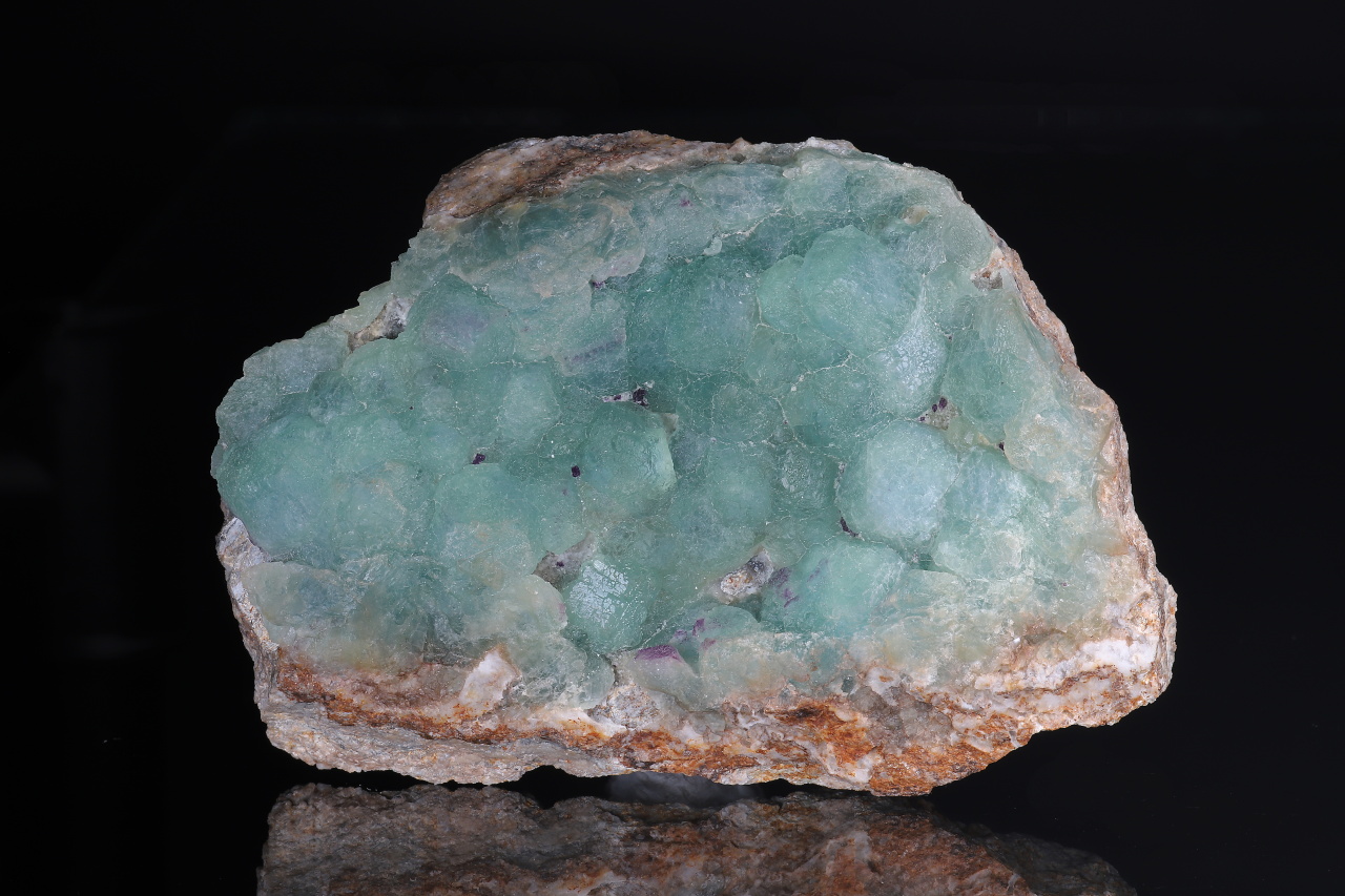 Druse von hellgrünblauen kuboktaedrischen Fluorit-Kristallen mit einer Größe von bis zu 11 mm von der Lokalität Kožlí bei Ledč nad Sázavou. Vom Exemplar ist der Quarz geätzt.