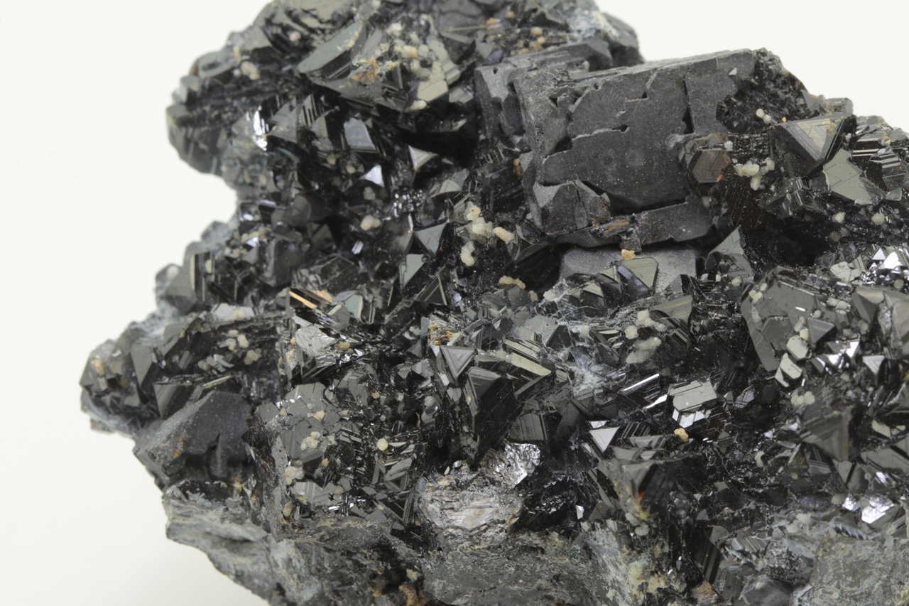 Galenit auf diesem Exemplar bildet stahlgraue, metallisch glänzende kubische Kristalle, die eine Größe von bis zu 1,7 cm erreichen. Diese Kristalle treten auf diesem Exemplar gemeinsam mit diamantglänzenden, metallischen Kristallen von Sfalerit auf. Aufgrund des hohen Glanzes des Sfalerit ist das Exemplar sehr schön und wirkungsvoll. Das Exemplar stammt aus der bulgarischen Lokalität Madan und wurde im Jahr 2011 entnommen .