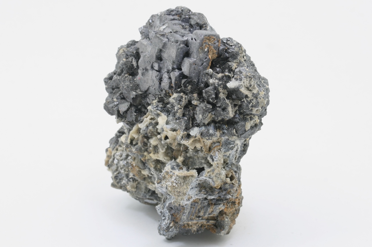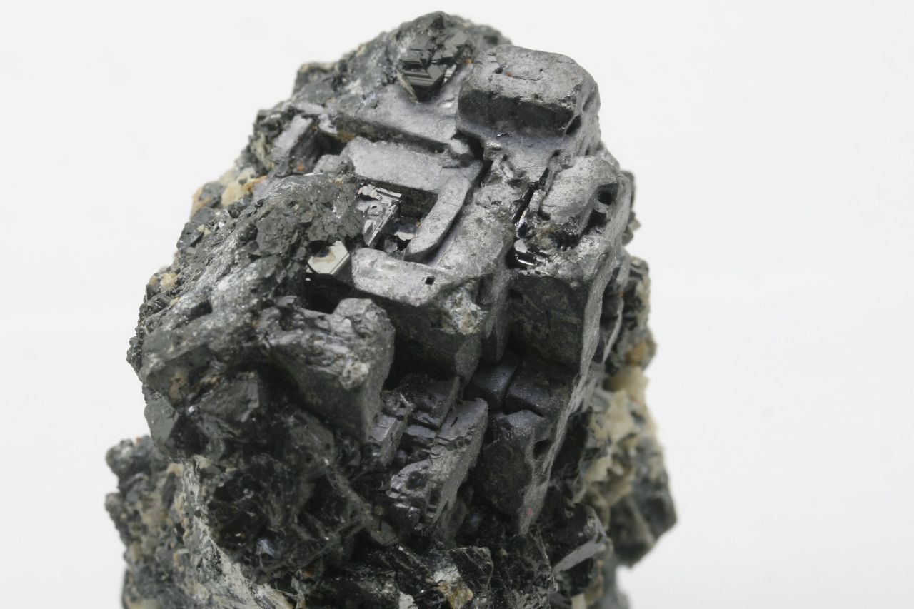 Ungewöhnliches skelettiertes Wachstum des Galenit-Kristalls, 33 mm groß, mit glänzenden Sphalerit-Kristallen.