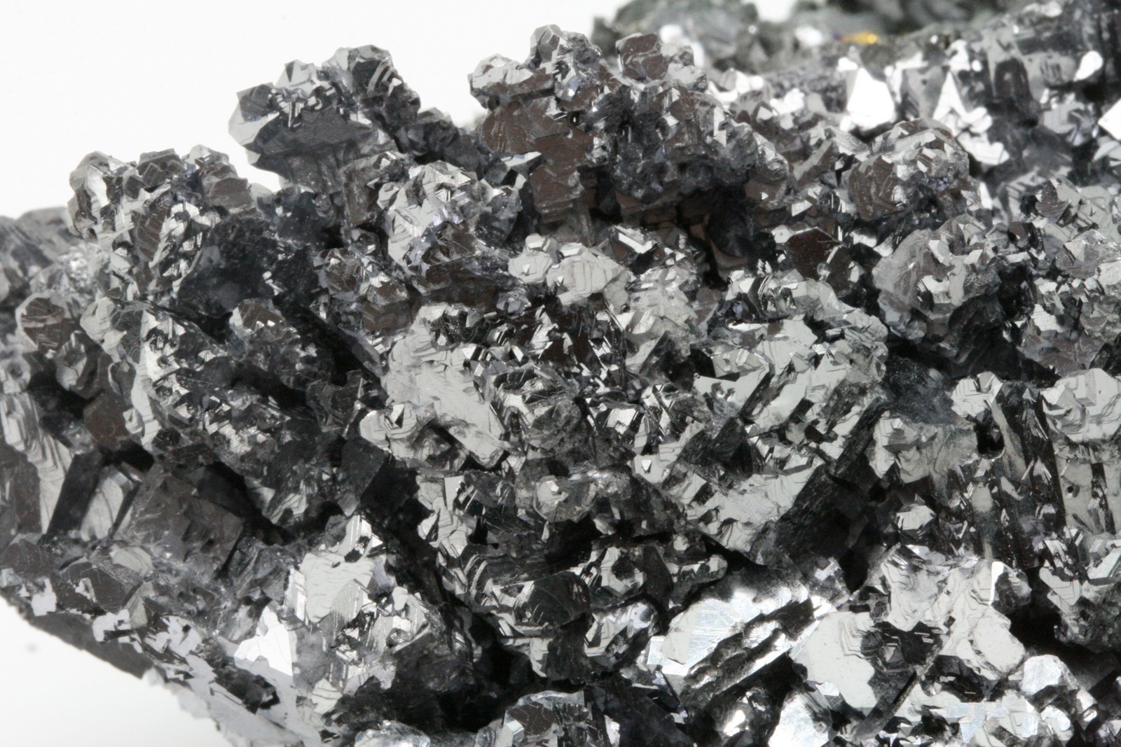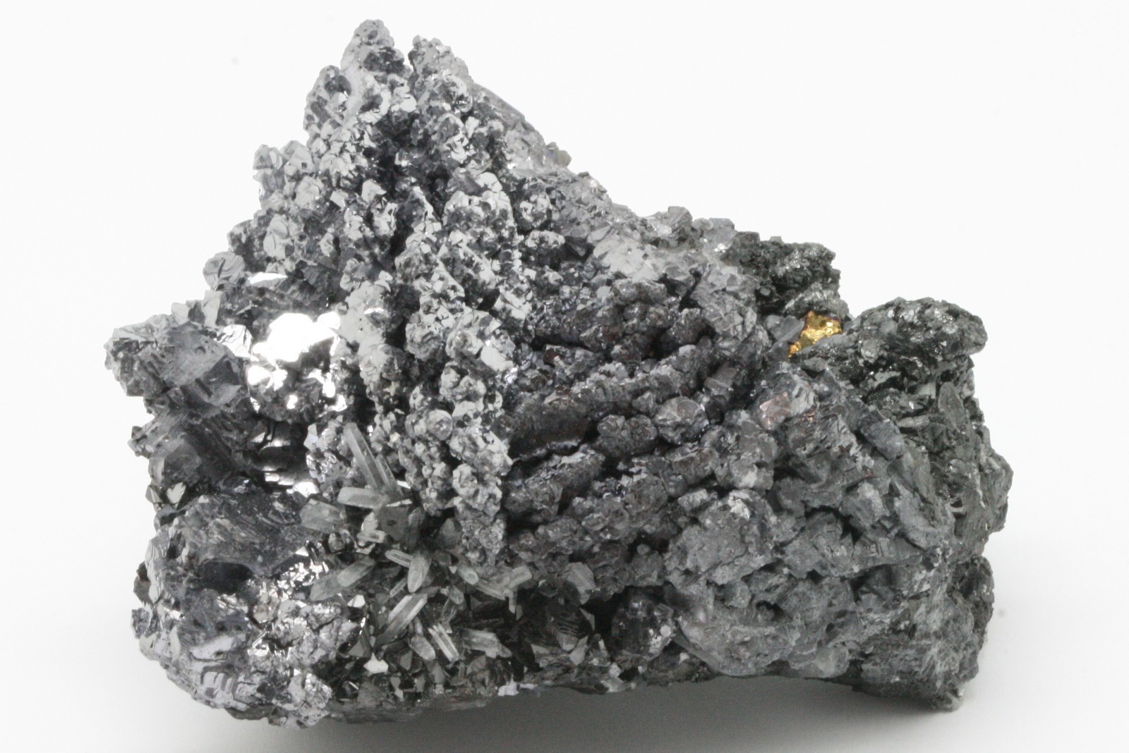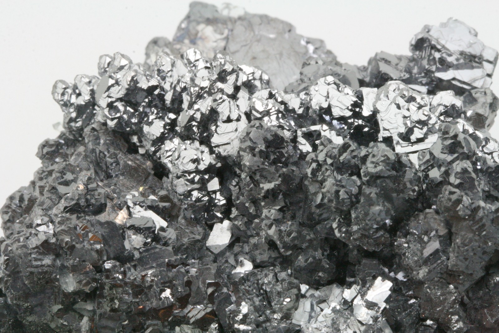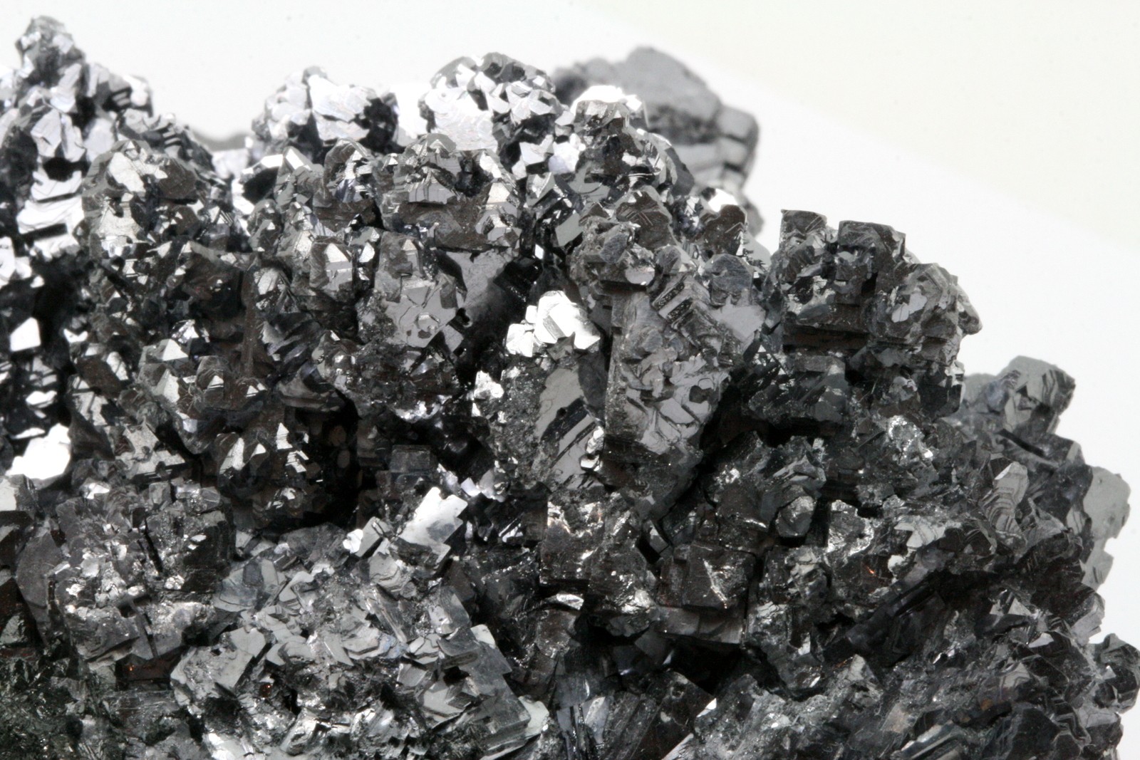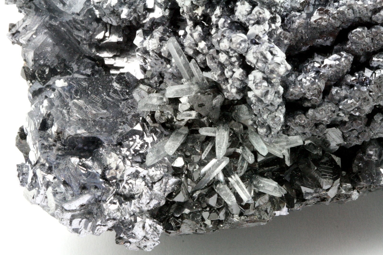 Sehr hochwertiges Exemplar von Galenit-Kristallen, an denen in der unteren Partie des Musters Kristalle von Sphalerit sitzen.