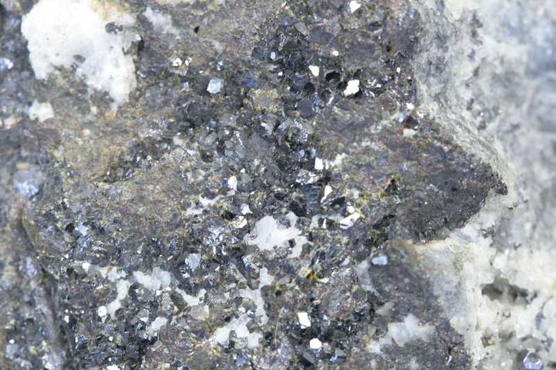 Klassisches Beispiel für Galenit mit Sphalerit aus dem Pribramer Erzrevier. Eine schöne Probe von nicht großen, aber perfekt begrenzten Galenit-Kristallen, die in Hohlräumen der Quarz-Siderit-Adergestein gewachsen sind; an der Seite der Stufe ist eine Fläche reich bewachsen mit intensiv glänzenden Sphalerit-Kristallen .