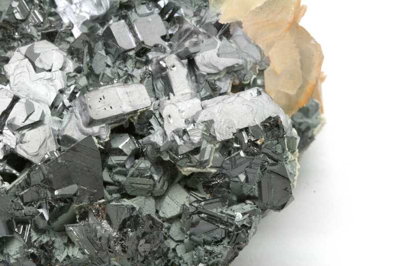 Wunderschönes Exemplar von Skelett-Galenit, belegt mit Calcit und Sphalerit aus der bulgarischen Lagerstätte Madan. Sehr hochqualitative Galenit-Kristalle von bis zu 28 mm Größe, auf denen die Kristalle von Sphalerit und Calcit aufgewachsen sind.