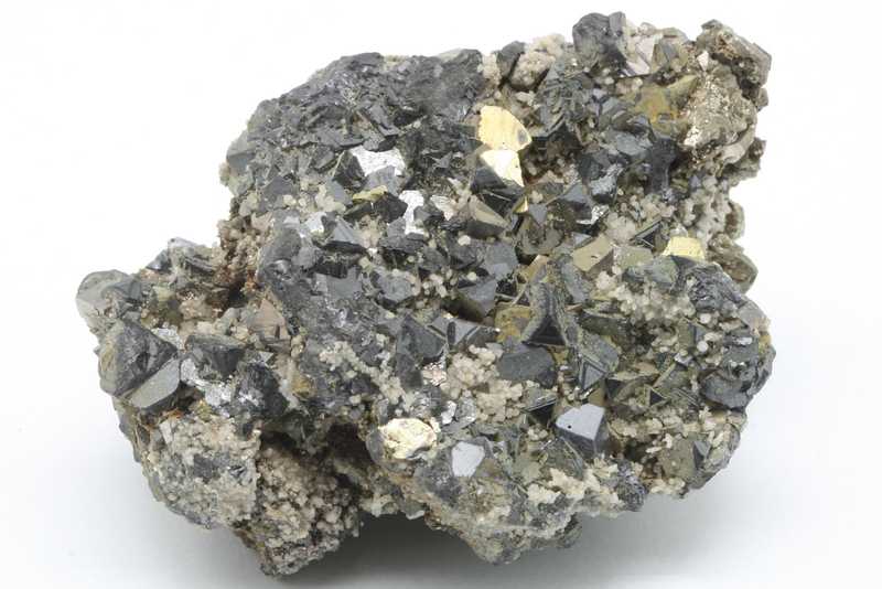 Cluster von Galenit- und Sphaleritkristallen. Die Kristallgröße beträgt bis zu 9 mm .